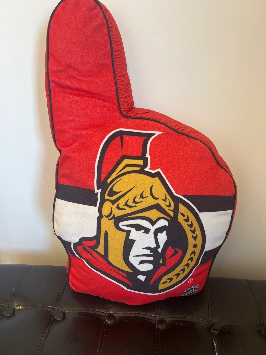 Show your team spirit with this Ottawa Senators foam finger pillow! It's in great shape and perfect for any Sens fan's collection. Go Senators! Pick up in Orleans. Please check out my other ads as I continue to go through my late wife’s & father’s estates.