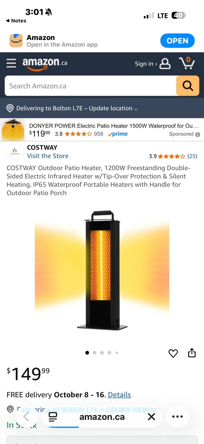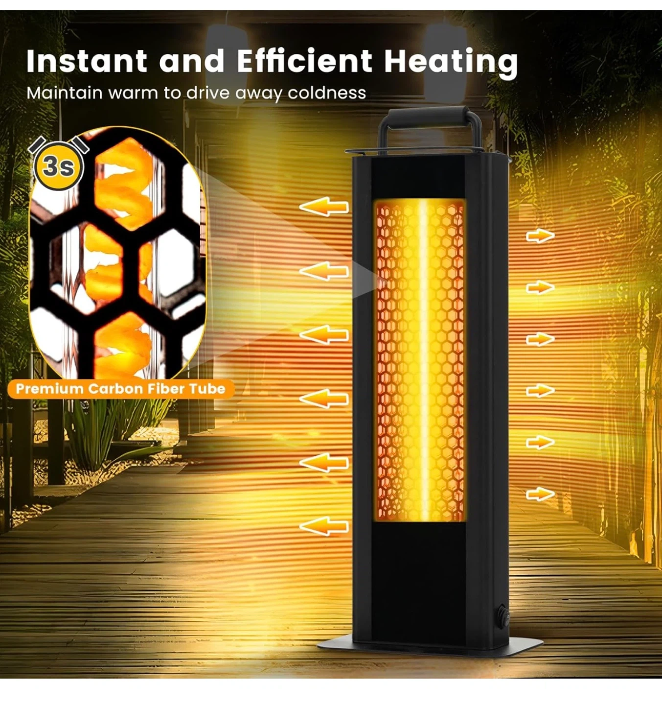 I'm selling a outdoor patio heater that's in excellent condition! It provides instant and efficient heating with its premium carbon fiber tube. Key features: - Heats up in just 3 seconds - Double-sided heating with a 100° heating angle - Heats a range of 54 sq ft Originally bought for $149.99!