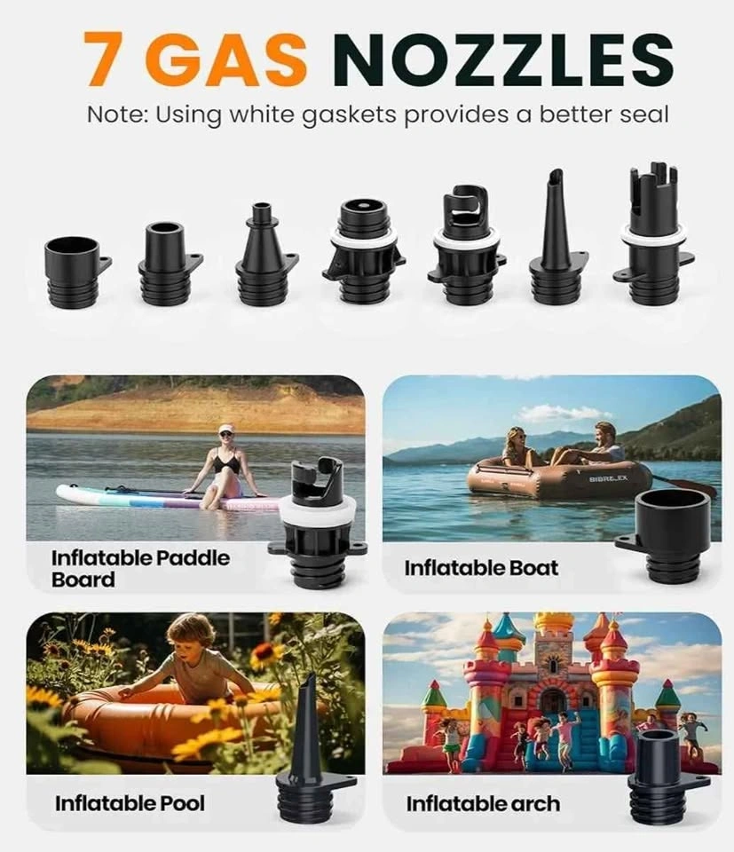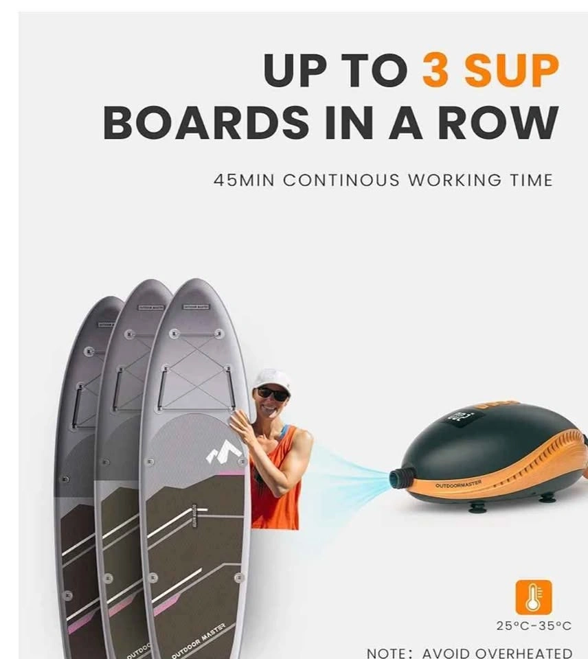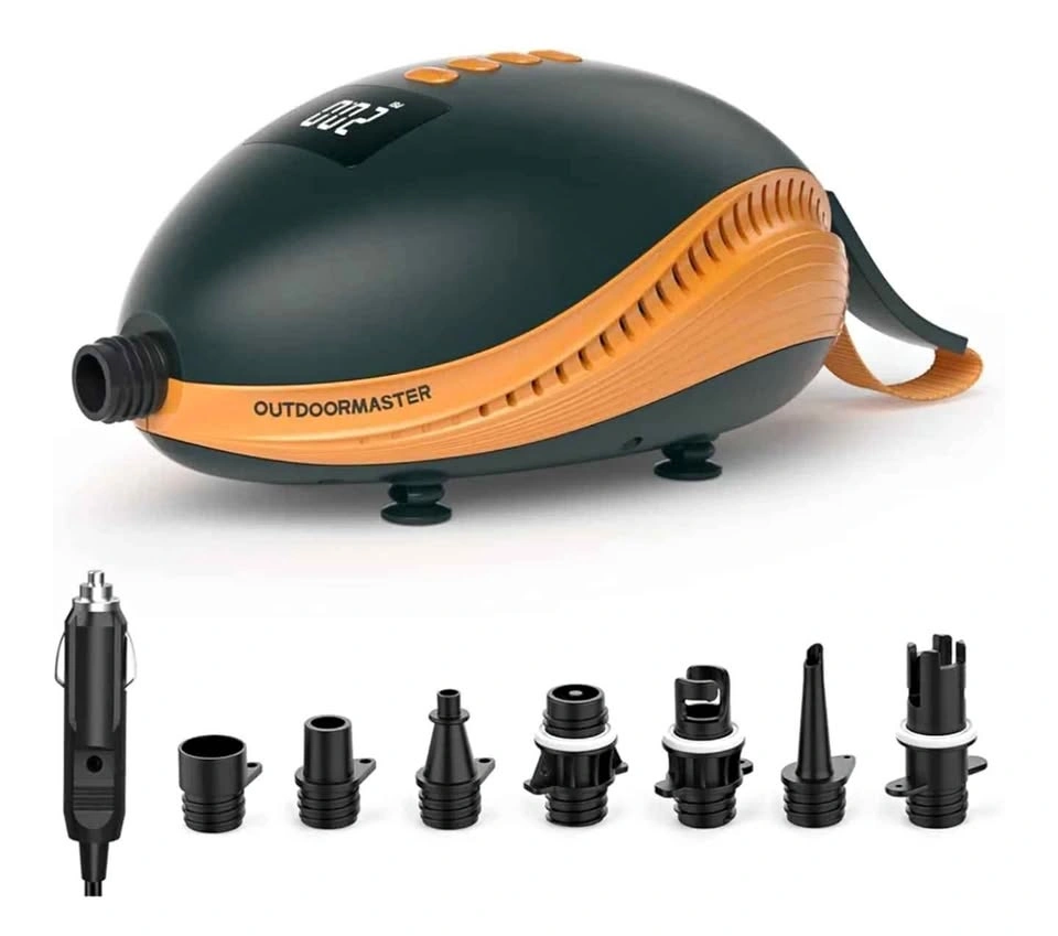 Selling for $35 only. Open box. PORTABLE, LIGHTWEIGHT BUT FASTER & LOWER NOISE- With about 0.9kg small size and carrying handle strap, the Dolphin sup electric pump is portable to handle or storage in your backpack, which is also faster than most smaller sup pumps in the market. With 85 db working sound, enjoy the paddle board pump with no-shocking, faster, high pressure inflation. ATTENTION: Not compatible for Tesla! MAX 20 PSI HIGH PRESSURE POWERFUL INFLATION SYSTEM - This Portable Electric Sup Air Pump Compressor / Air Inflator inflates a 260L inflatable paddle board about 10 minutes to reach up to 15 PSI. The intelligent single-stage paddle board pump with 20 PSI max speed at 40L/min. Please allow the unit to cool before restarting. Operate in a shaded area whenever possible. AUTO-OFF & CONSTANTLY WORKING FOR EASY INFLATION - Leaving Dolphin Electric Paddle Board Pump to auto turn off when the desired pressure is reached during inflating, which could prevent your SUP boards, inflatables or other pool toys to damage. The portable paddle board pump could inflate continuously, which could save your time to enjoy your summer paddling. DIGITAL DISPLAY WITH REAL TIME PRESSURE MONITORING - Press “+”button or “-” button to set your desired pressure, the digital display will show setting pressure and monitor the pressure in real time. Inflation is so easy with OutdoorMaster Electric Paddle Board Pump! 12V DC CAR CONNECTOR & FULL SET NOZZLES ATTACHMENTS - Connects to your car's 12V DC connector. Features a 12A fuse for increased safety. Electric sup air pump comes with 7 nozzles to fit most high pressure inflatables like stand up inflatable paddle boards, air beds, kayaks, boats, arch, swimming pools, tents and so on. Attention: If the nozzle is not suitable to your inflatables, you could try to change white gaskets, if necessary, steady it manually.