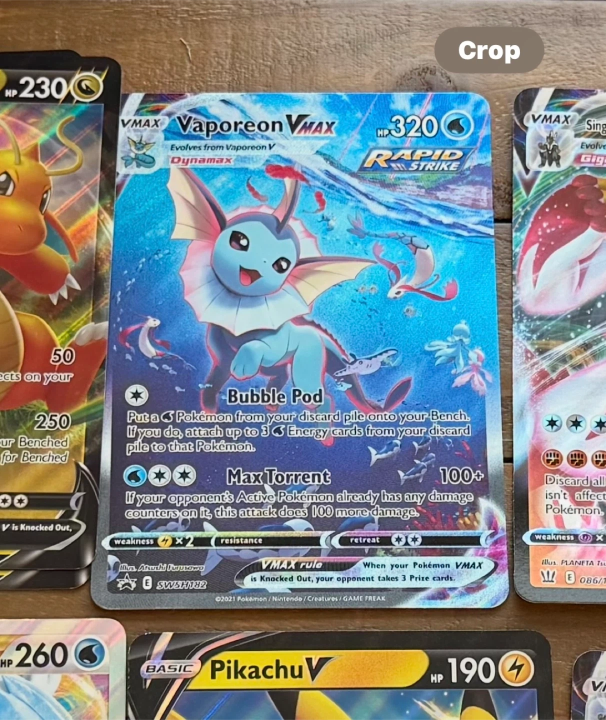 Selling a couple of cool Pokemon cards! Included are the Pikachu V Union and Vaporeon VMAX cards. Great for collectors or players