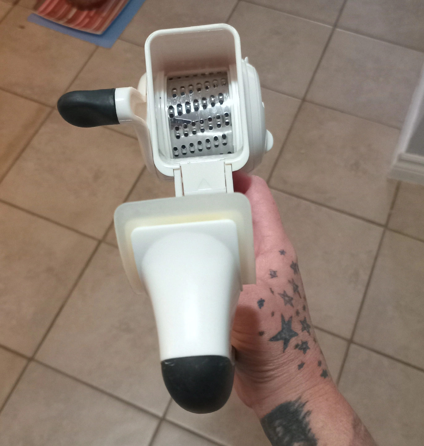 I'm selling an OXO Good Grips Rotary Grater. It's in great condition, barely used, and ready to help you grate cheese, nuts, and more with ease! The ergonomic design makes it comfortable to use, and it's easy to clean.