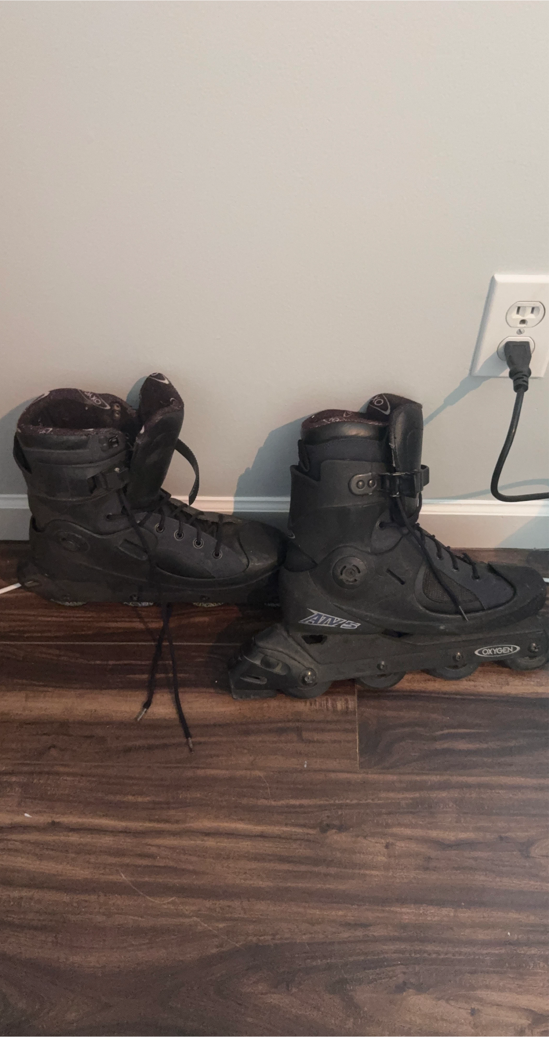 Selling a pair of Oxygen inline skates. They appear to be in good condition, perfect for someone looking to get into skating or needs a replacement pair. Please note that the size is unknown so you'll have to try them on to see if they fit!