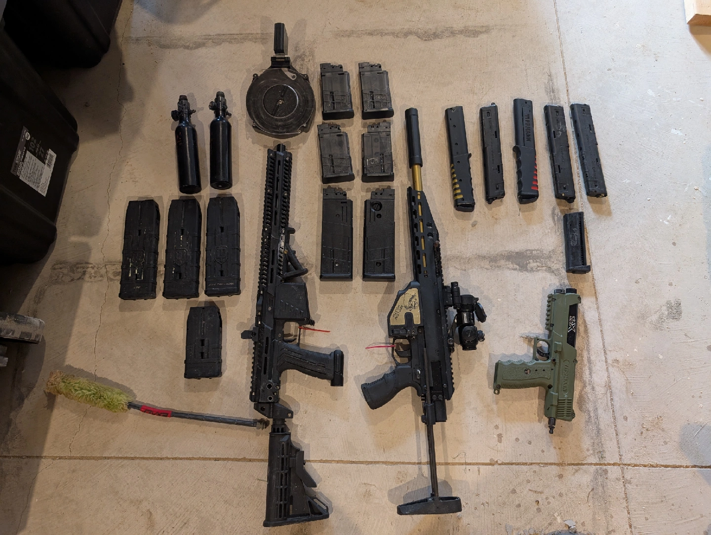 alot of mag fed paintball gear for sale mg100 milsig m5 - FSR barrel tipman pistol lots of mags, accessories