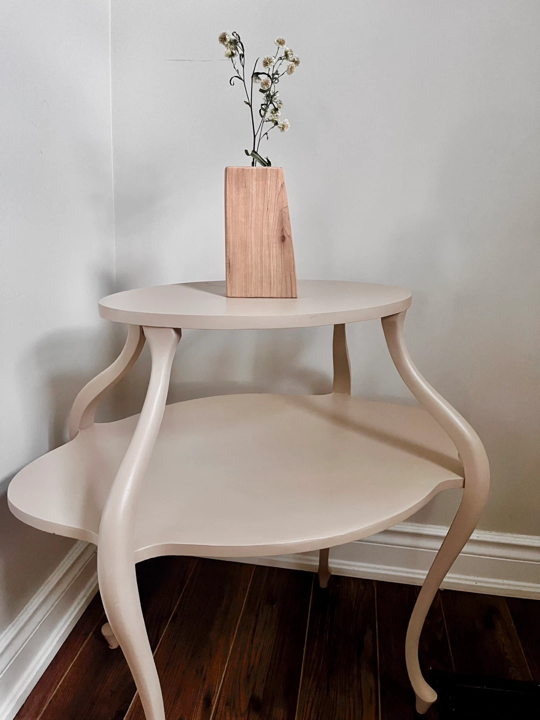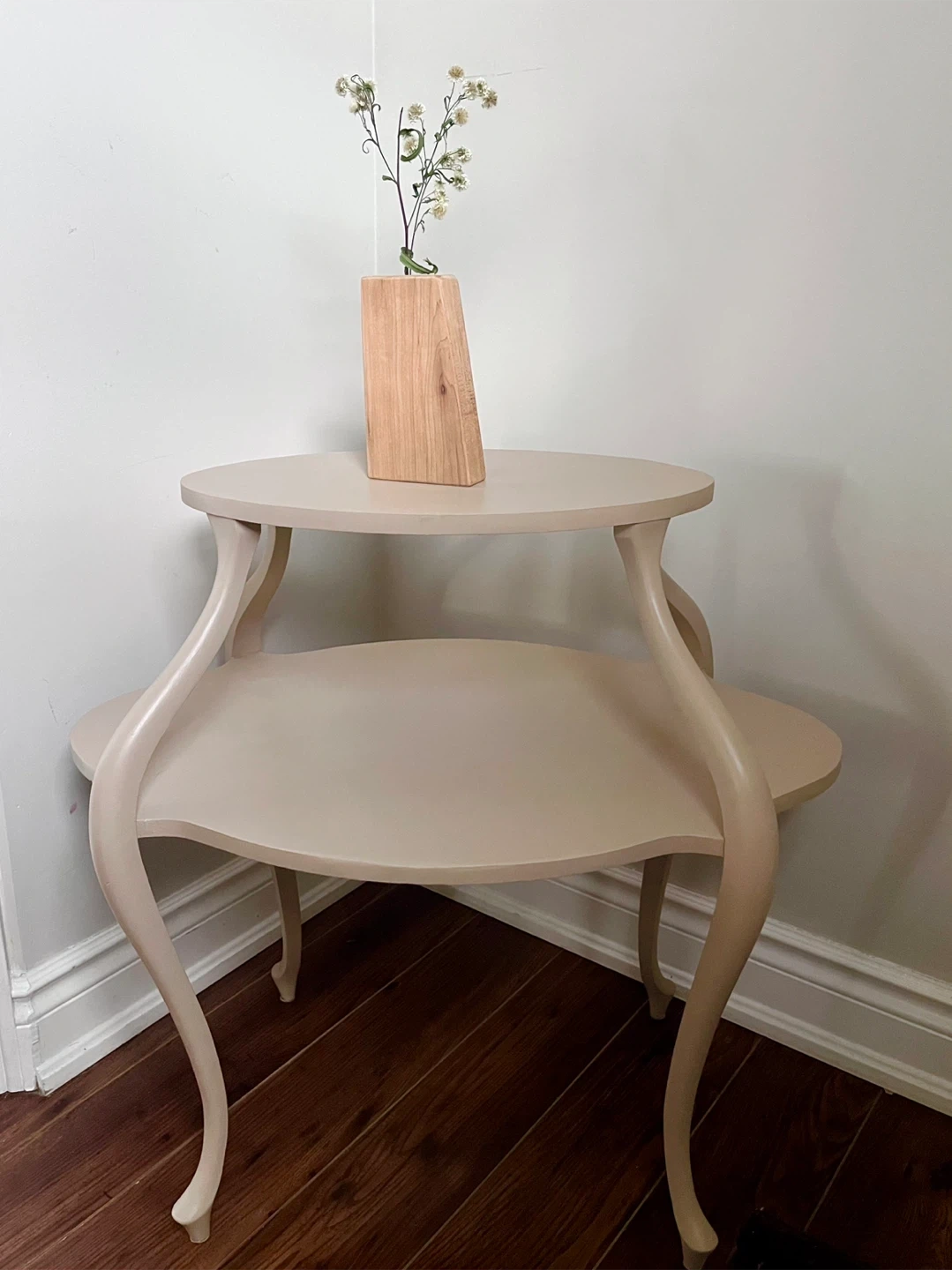Selling a cute two-tier accent table! It's painted in a neutral colour that would fit in any room. Can also be used as a dessert or jewellery display table for vendors or special events. Pickup at Rogers and Caledonia