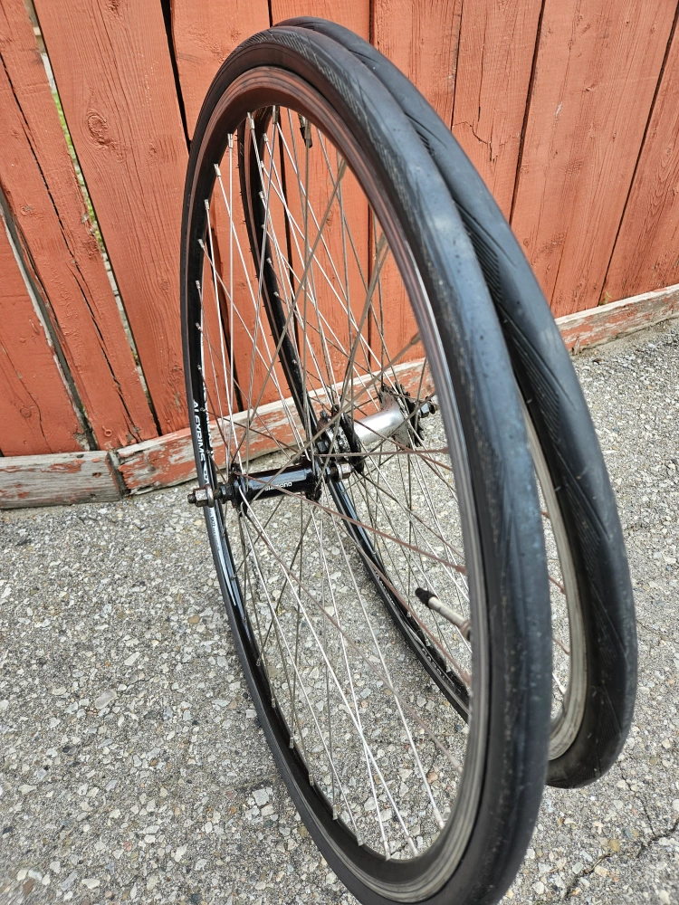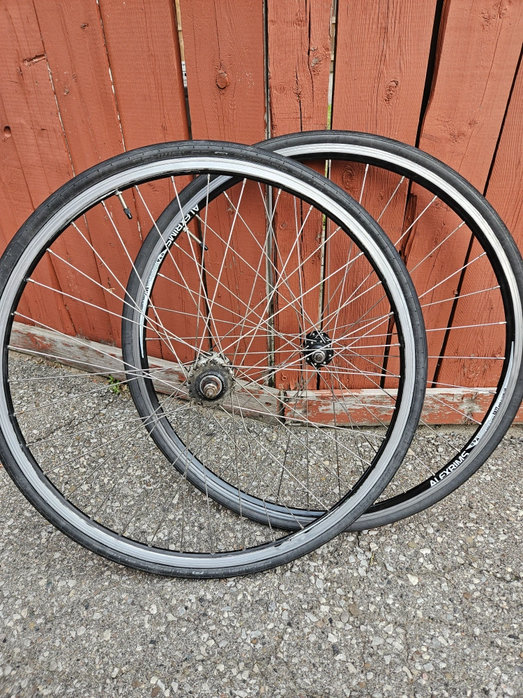 Selling a pair of Alexrims bike wheels. They have some wear but are still in good shape for getting around town or enjoying a leisurely ride