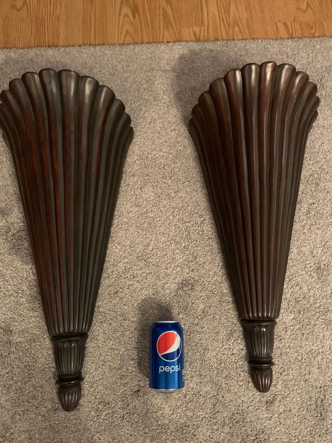 Selling a pair of dark wood wall sconces. They're in great shape and would add a touch of elegance to any room! Hard cherrywood wall sconces