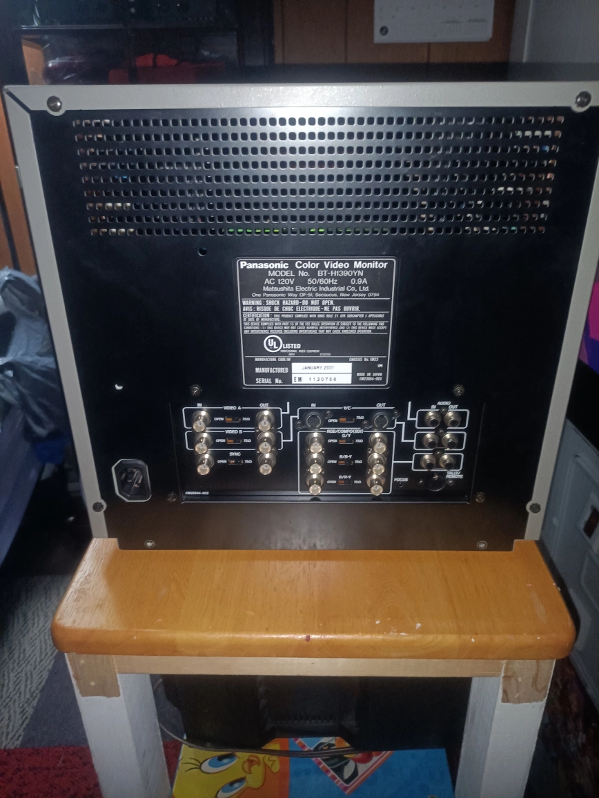 selling a 13 inch panasonic pvm with 750 tvl has component rgb svideo and composite has a very high line count the plastic bezel has a crack on the right side that i fixed with jb weld plastic bond but that doesnt affect anything it is in full working perfect condition