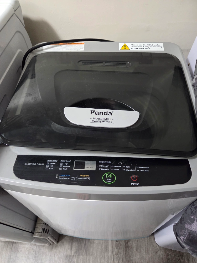 Selling a Panda PAN638MH1 washing machine. It features a diamond drum and multiple wash cycles, including normal, delicate, spin, heavy soil, and tub clean. It also has quick and light soil options. The water level can be adjusted to small, medium, or large. Feel free to ask any questions!