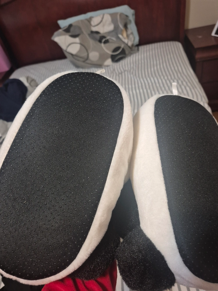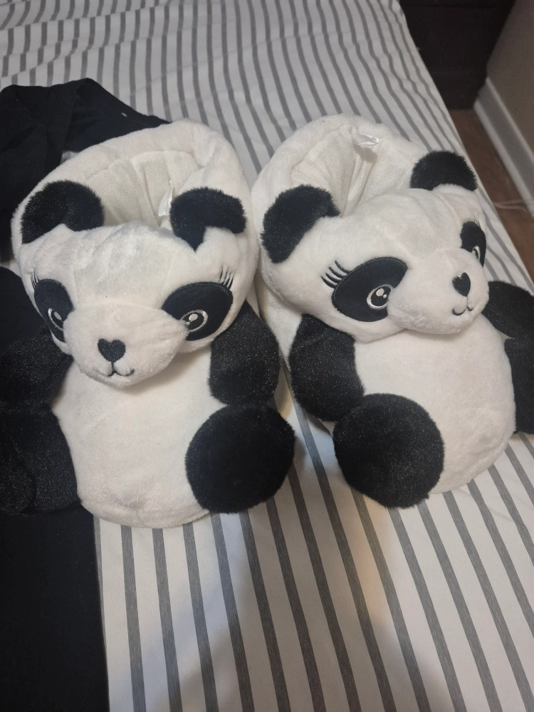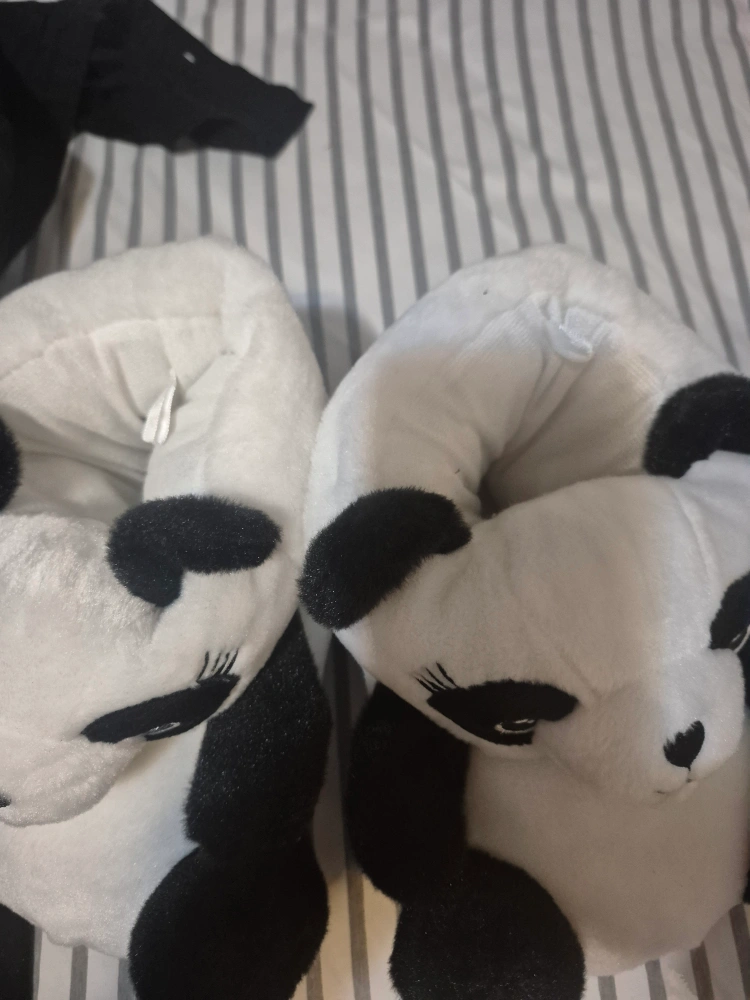 Keep your feet warm and comfy with these adorable panda slippers! They're super soft and have a non-slip sole, perfect for padding around the house on chilly days. They're in great condition and ready for a new home!