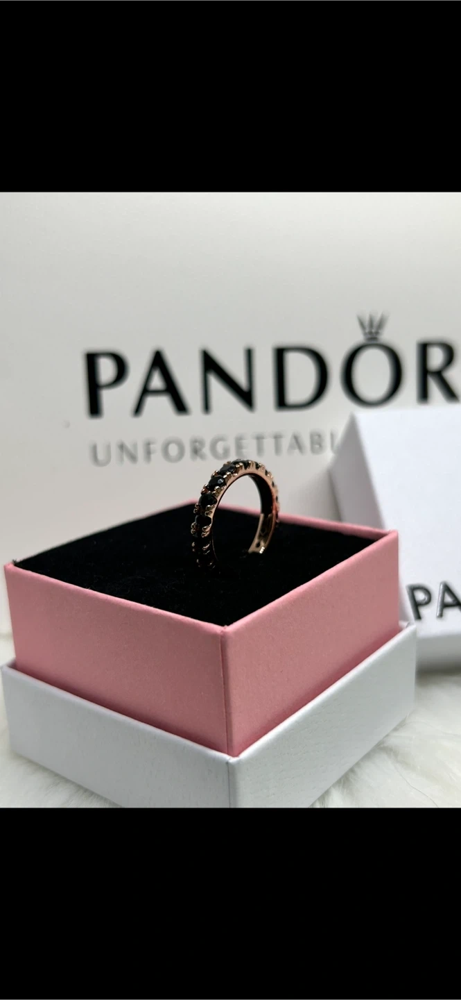 Selling a beautiful Pandora Black Sparkling Row Eternity Ring! It comes with the original box. Originally bought for $165. It's in great condition and ready for a new home
