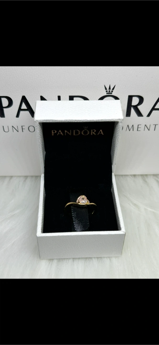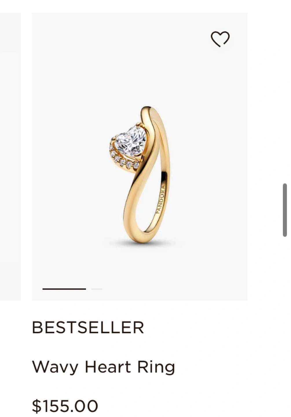 Selling a beautiful Pandora Wavy Heart Ring! It comes with its original box. This ring is a bestseller and features a delicate wavy design with a heart-shaped stone. It's a lovely piece to add to your jewelry collection!