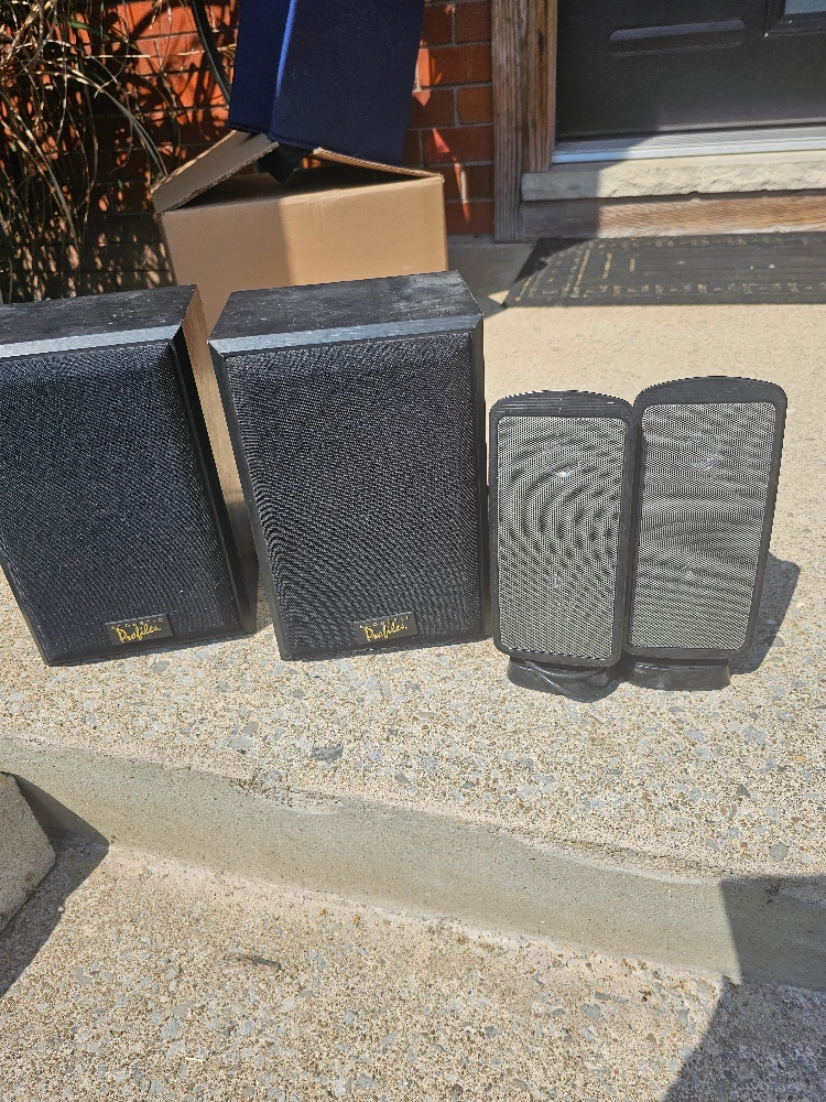 Selling a set of 4 Paradigm Profiles speakers. They are in used condition and would be great for a home theatre setup or for listening to music. They are black and have a nice sound quality.