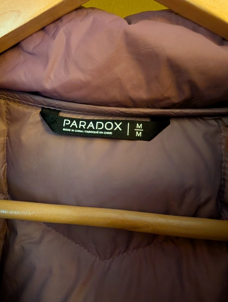Paradox puffer jacket in size medium. Purple-lish colour. It's in great condition and ready for the cooler weather!