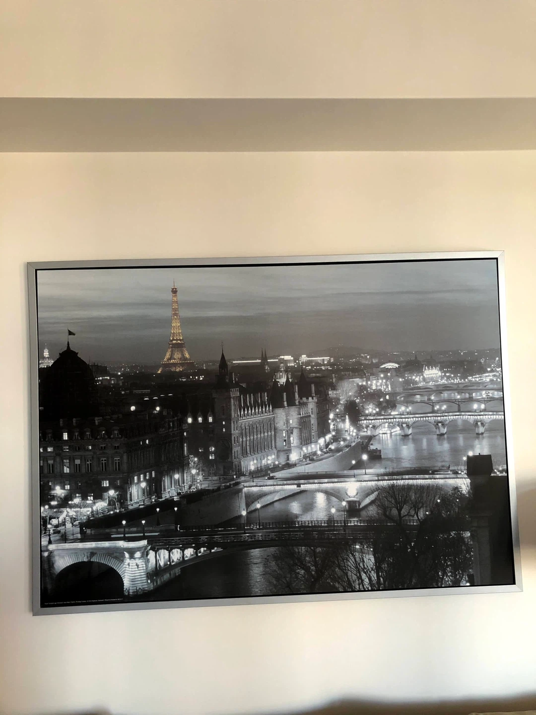 This is a framed print of the Paris skyline. It's in good condition and would look great in any room of your house!