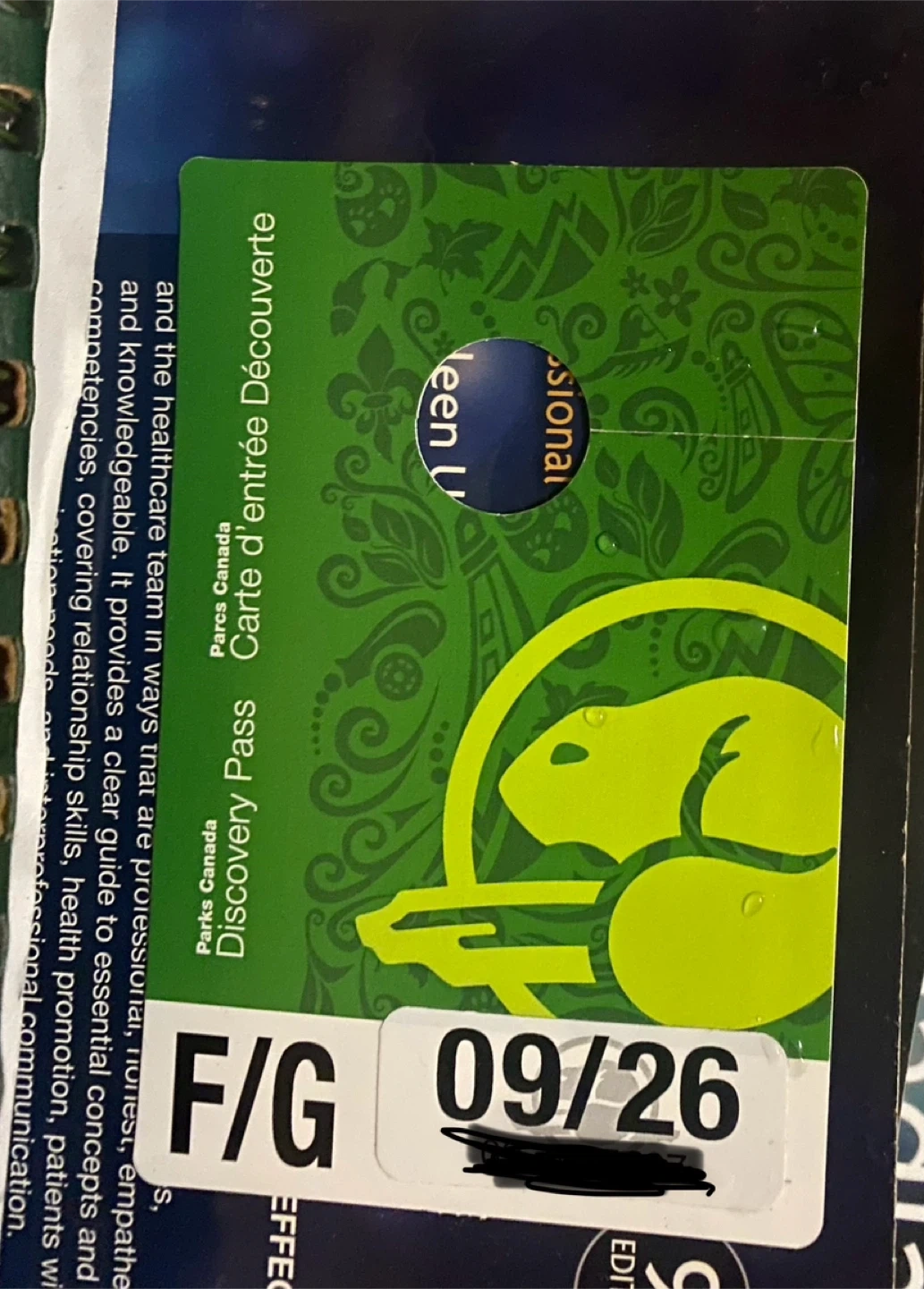 Selling a Parks Canada Discovery Pass! Perfect for exploring our beautiful national parks and historic sites. It's valid until September 2026, so you'll have plenty of time to use it