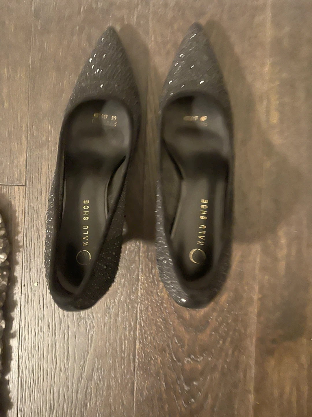 Party shoes black with black beads on it.