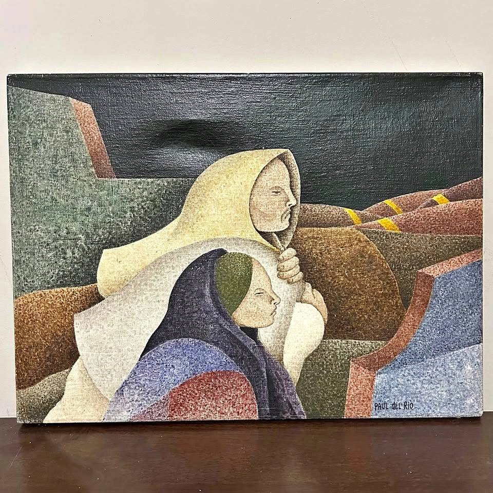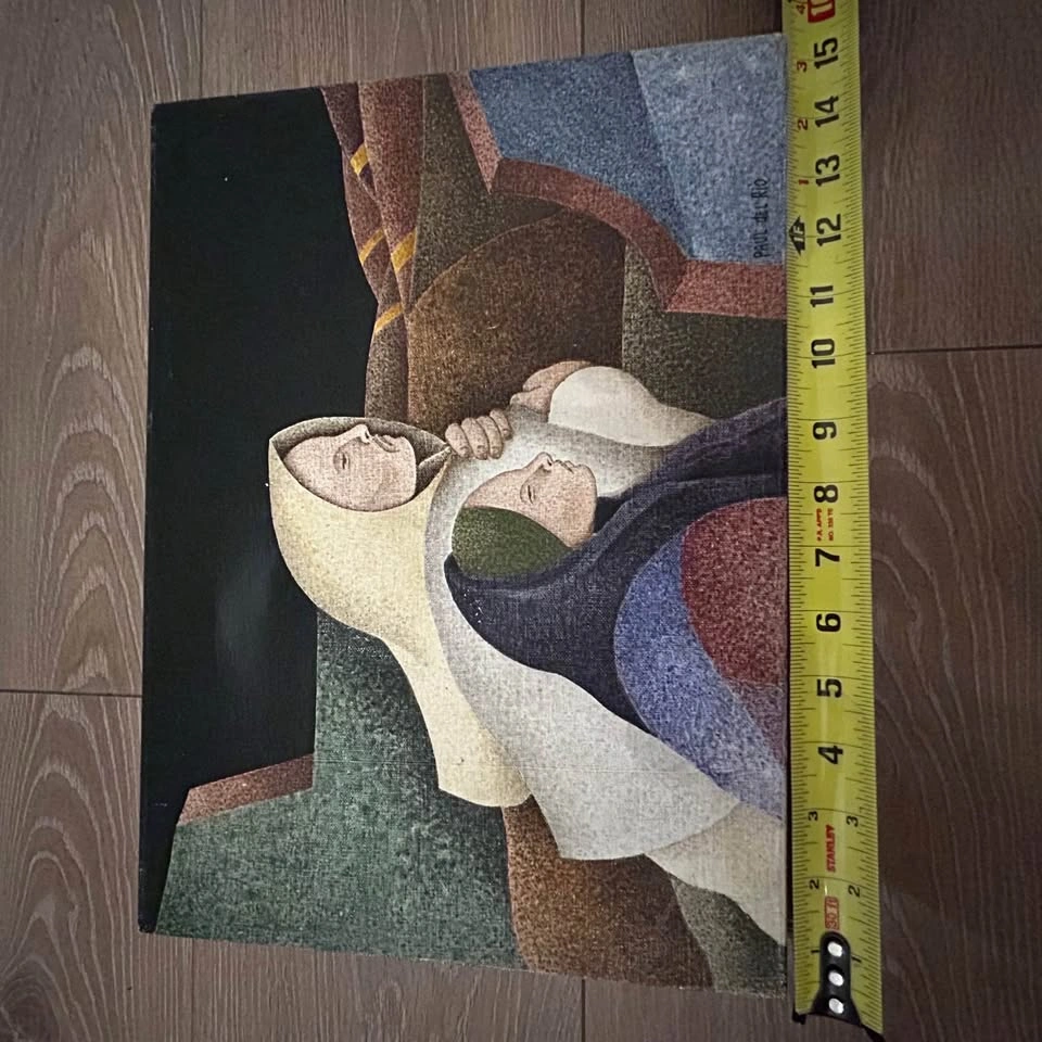 Original painting on canvas by Venezuelan artist Paul del Río (1943–2015), internationally recognized Latin American painter and sculptor. Title: Fres Cordillera (inscribed on back, dated 1988) Medium: Oil/acrylic on canvas Size: 11” x 15” (28 cm x 38 cm) Signature: Signed lower right Paul del Río Condition: Vintage condition with some surface wear and a dent on canvas (see photos). Paul del Río’s works blend cubism, surrealism, and social themes. His paintings are highly collectible and rarely appear on the market. Pick up: Seton area, Calgary. See also my other lots. Open to your questions and suggestions. If necessary, I provide additional photos. These are not new things, so please look carefully at the photos and videos. Sizes are submitted on request and also using a tape measure in the photo.