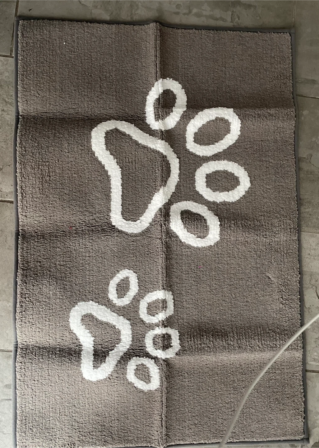 Add a touch of fun to your bathroom with this adorable paw print bath mat! It's a lovely brown colour with white paw prints. The size is 20" x 31.5". It's still sealed in its original packaging, so it's in brand new condition