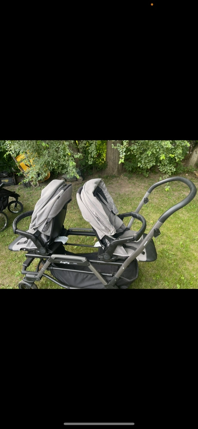 Selling a Peg Perego Duette Piroet double stroller! It's in great condition and ready for a new family. This stroller is perfect for twins or siblings close in age. It features a versatile design with two seats and a sturdy frame.