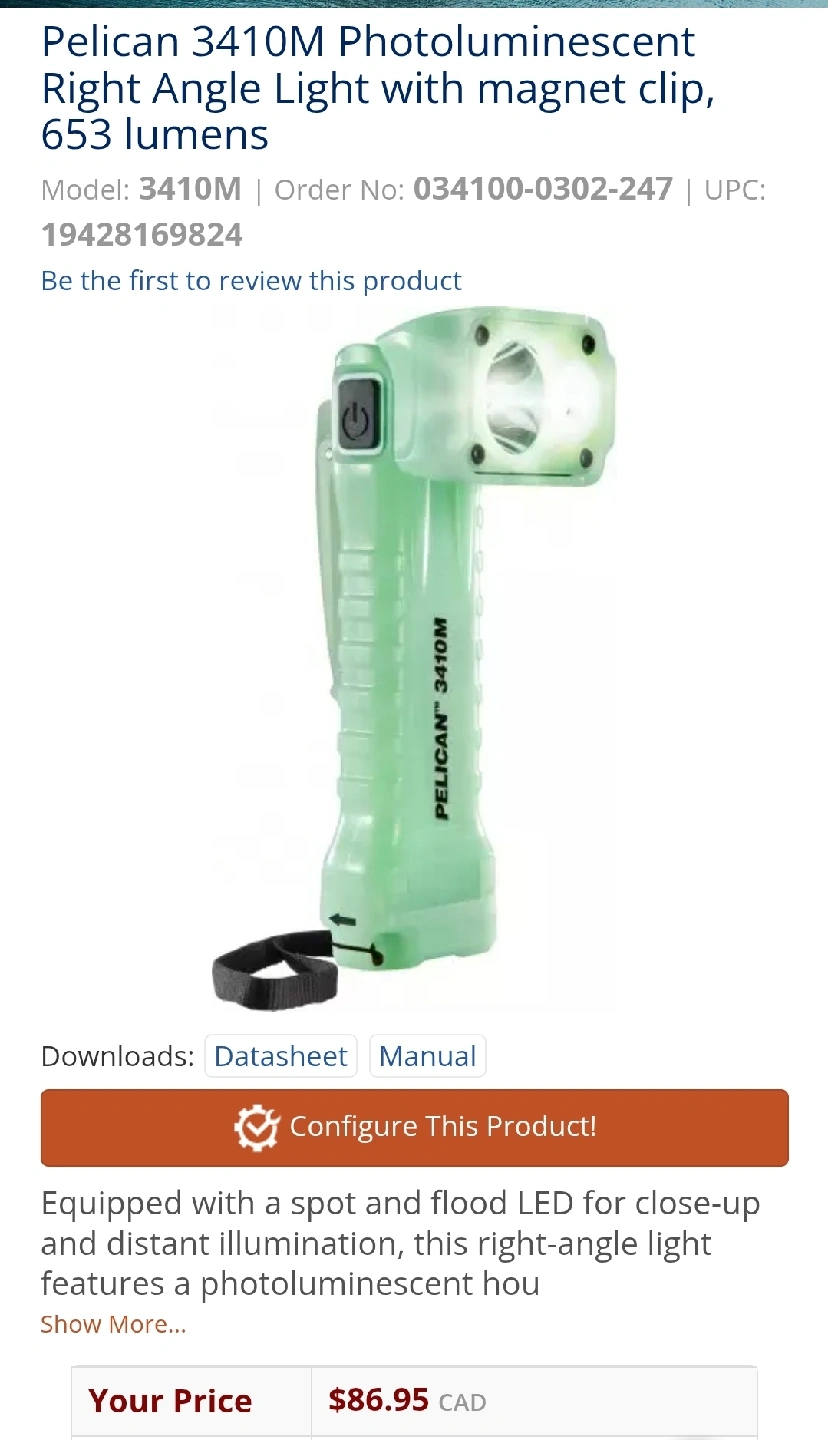 BRAND NEW - Pelican 3410M Right Angle Waterproof, Magnetic & Glow In The Dark Flashlight. $60 Takes it. Pickup in Hastings Sunrise near North Nanaimo and McGill Retails for around $100 CAD Brand new was givin it for work and changes jobs before getting to use it.
