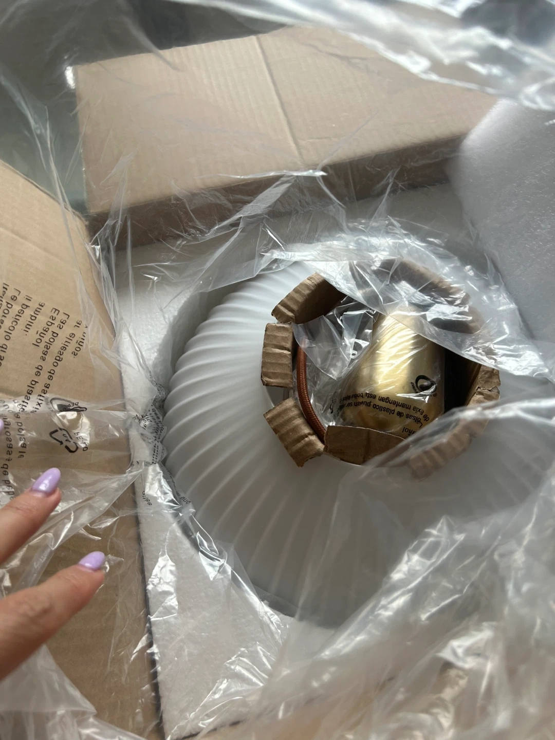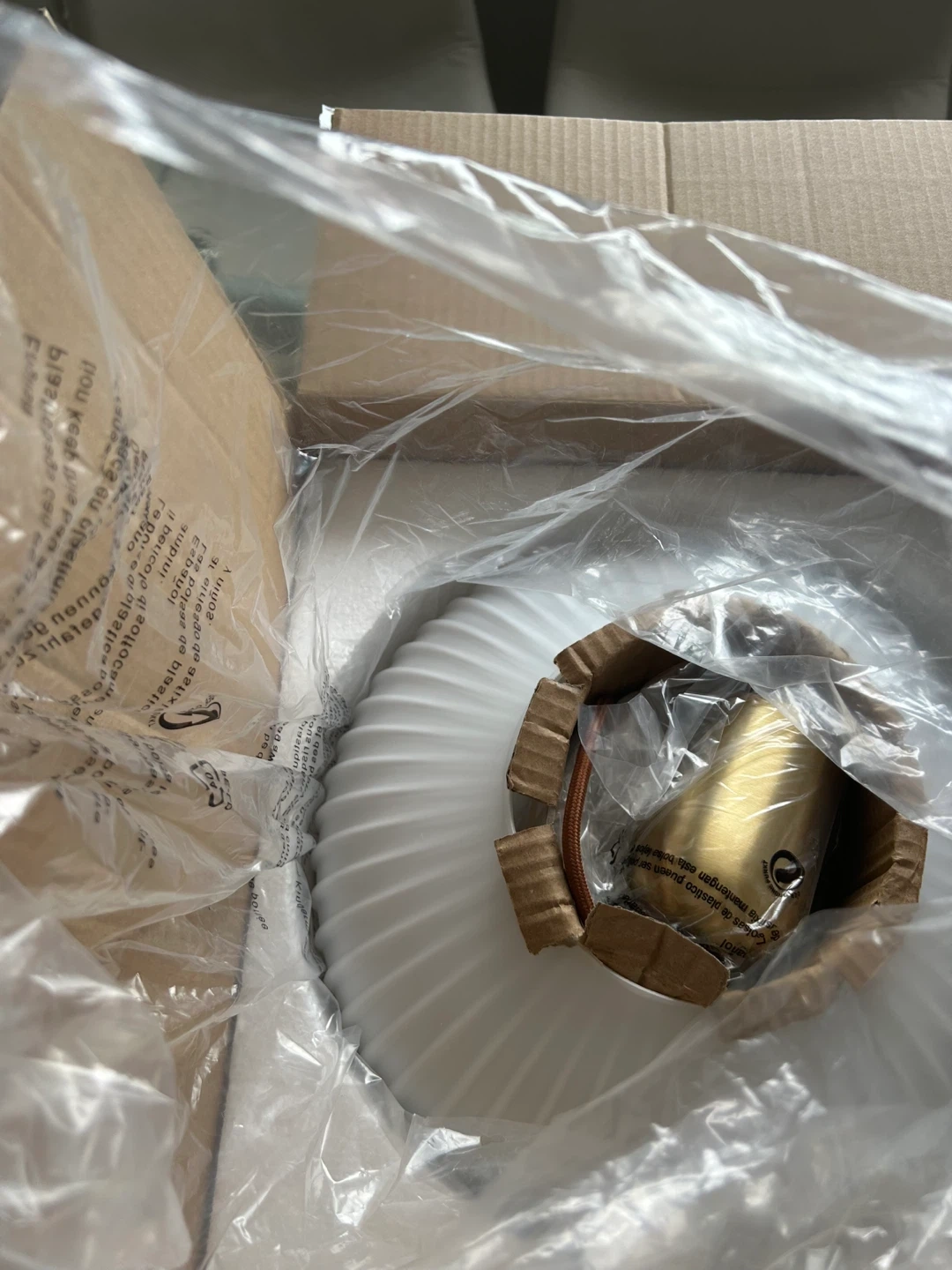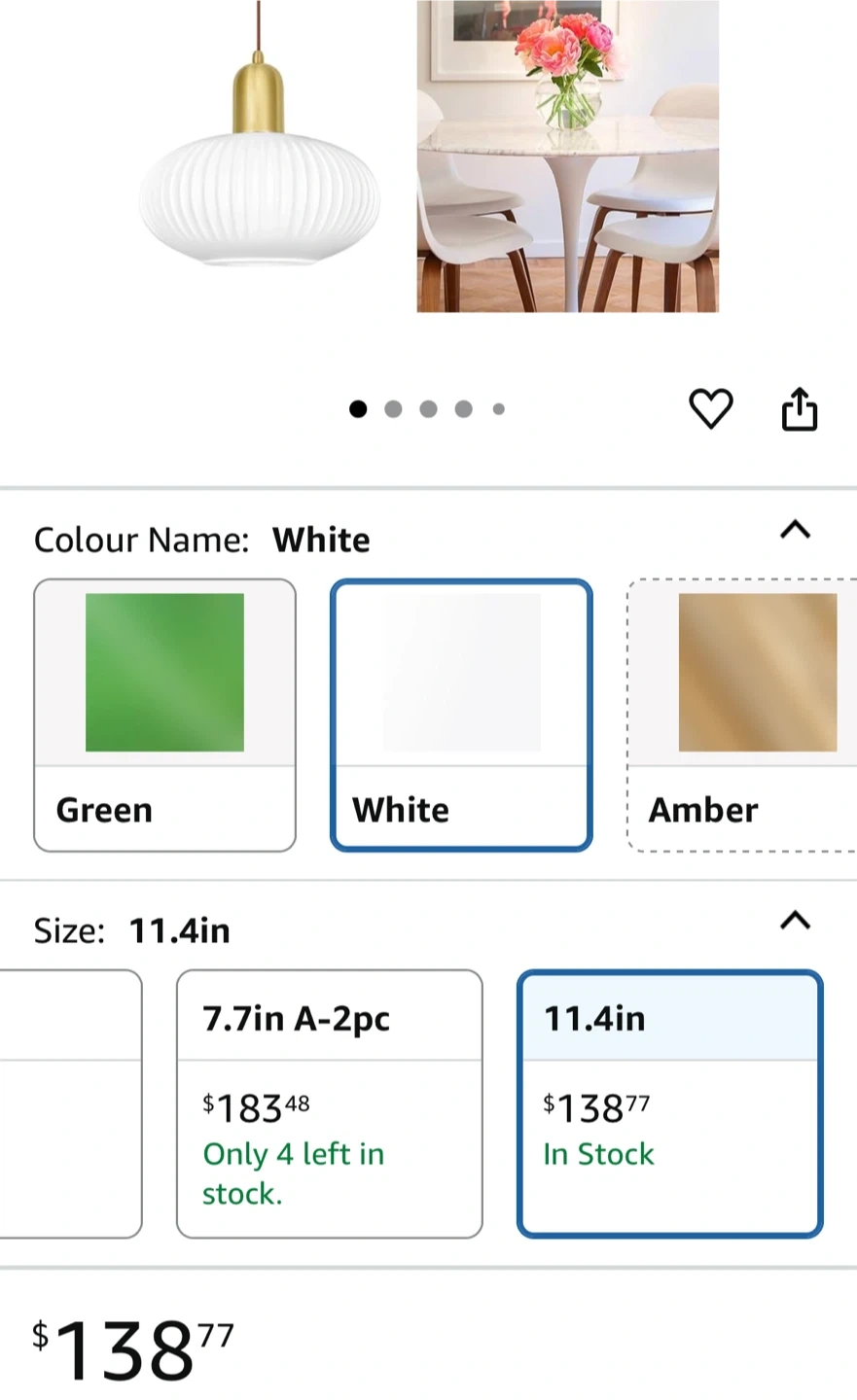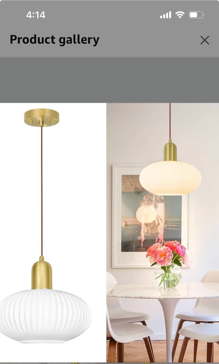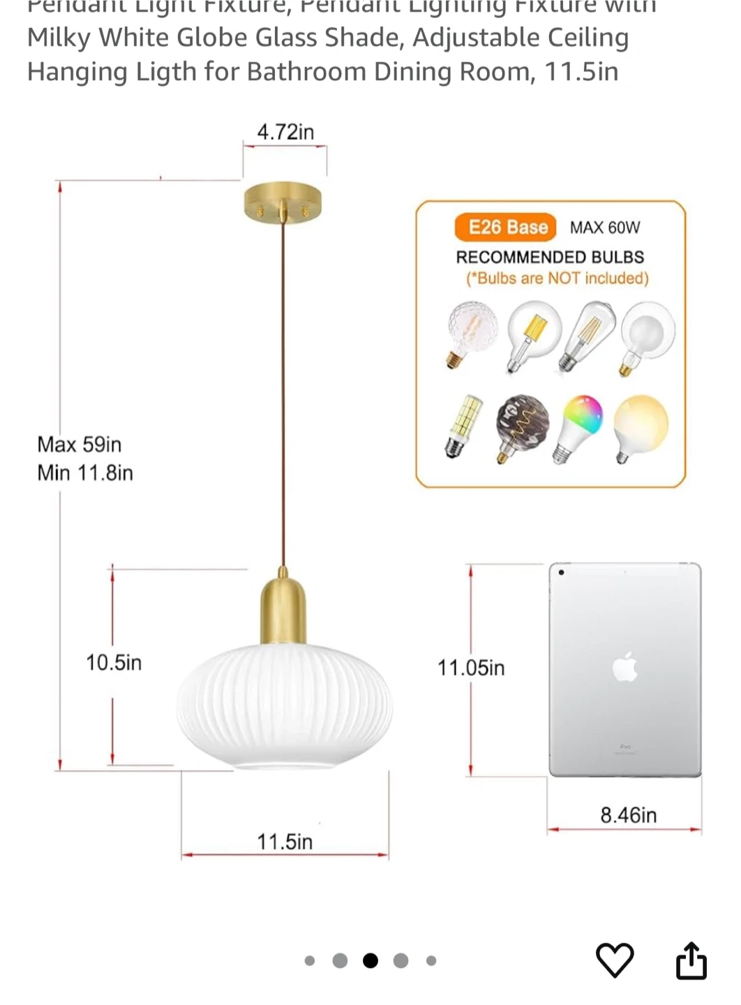 Selling a pendant light fixture with a milky white globe glass shade. It's an adjustable ceiling hanging light.It measures 11.5 inches. The original price was $138.77. Comes in its original box