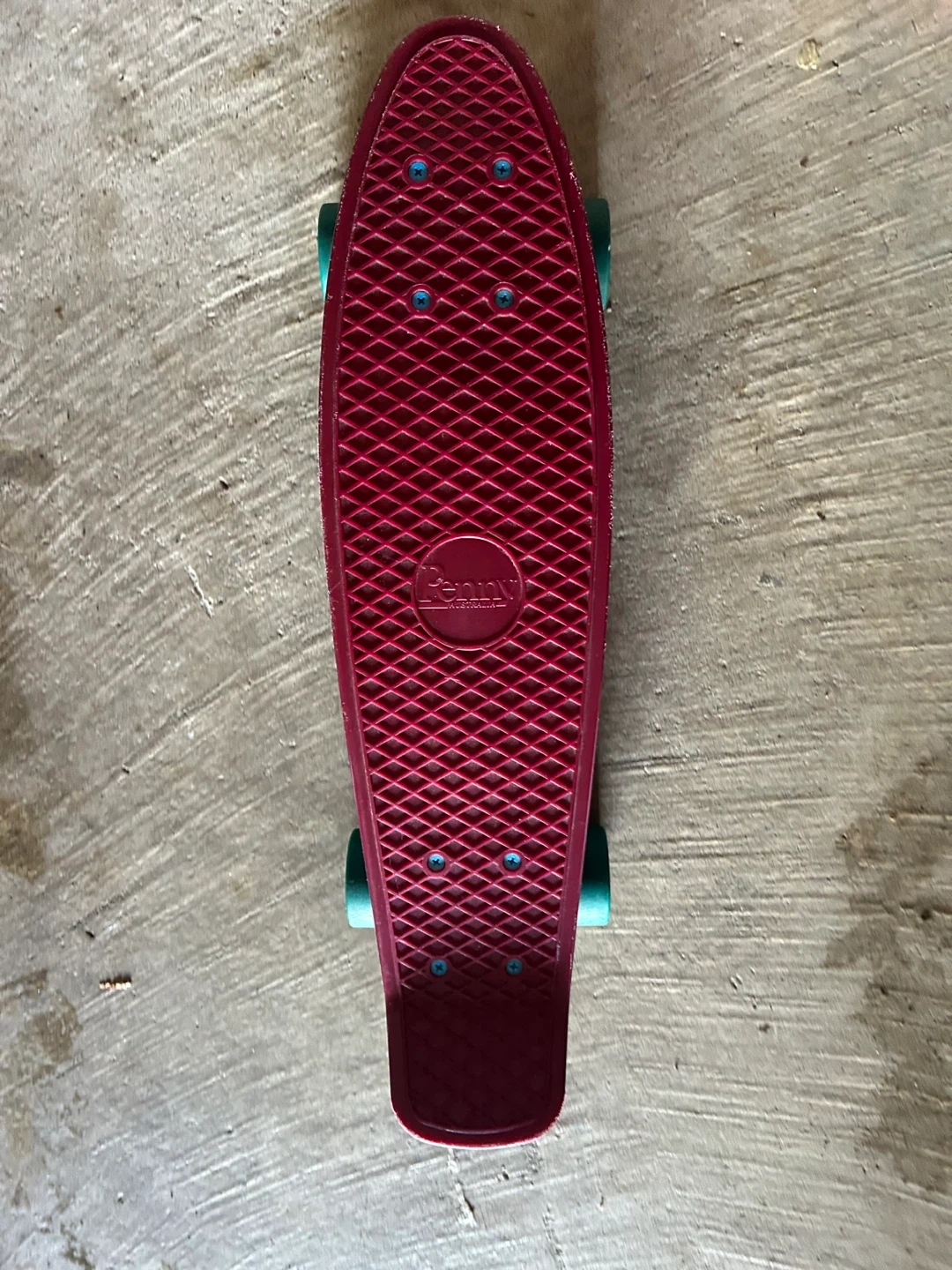 Selling a Penny skateboard! It's in great shape and ready for some fun. The deck has a cool design, and the wheels are smooth. Perfect for cruising around town!