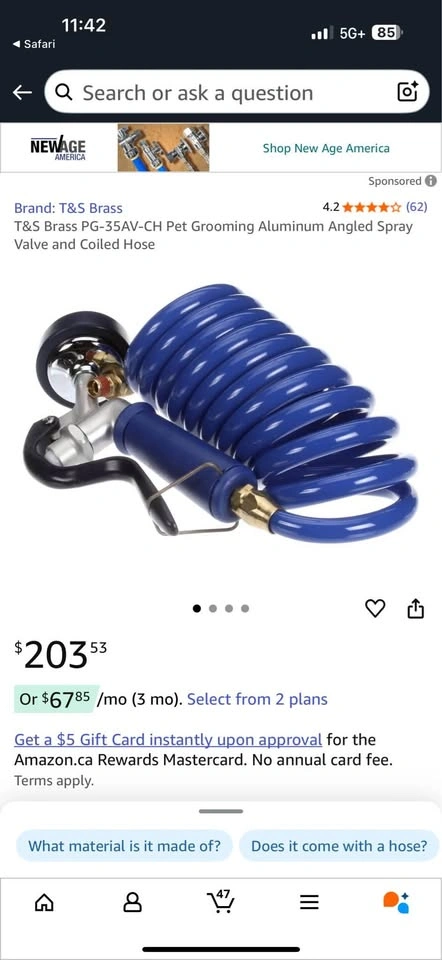Enhance your pet grooming setup with the T&S Brass Pet Grooming Aluminum Angled Spray Valve and Coil PG-35AV-CH. Designed with durability and precision, this valve is a must-have for any professional pet grooming facility. Crafted by T&S Brass, you can expect reliable performance and a long-lasting addition to your tools. The PG-35AV-CH model is manufactured in the United States, ensuring top-tier construction and adherence to industry standards. Its angled design provides versatility for a variety of grooming applications, making it an essential component for your business. Simplify your equipment setup with this straightforward-to-install spray valve and coil, tailored to meet the unique demands of pet grooming environments.