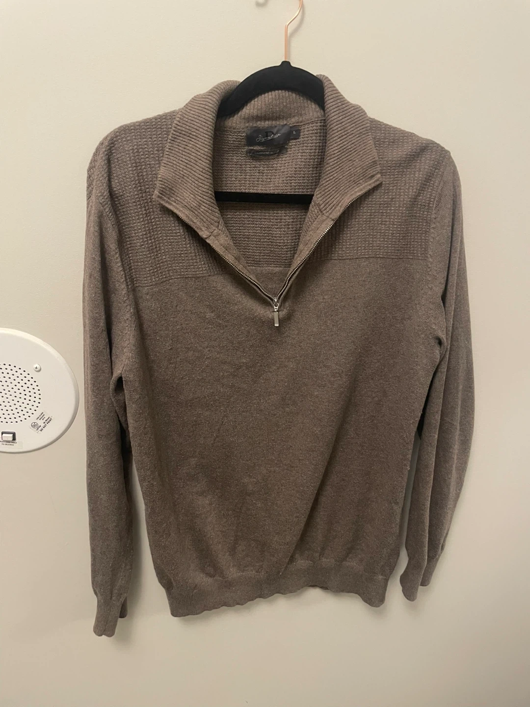 Cozy Peter Millar quarter zip sweater in a neutral brown colour. Perfect for layering during the cooler months