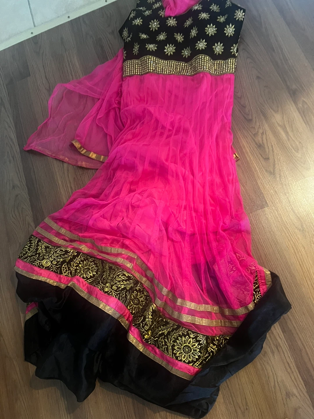 beautiful Anarkali dress in pink and black with gold detailing. Wore once to an Indian wedding. No need for it again. Pick up asap or it will be donated. Pick up only. Keele and Eglinton