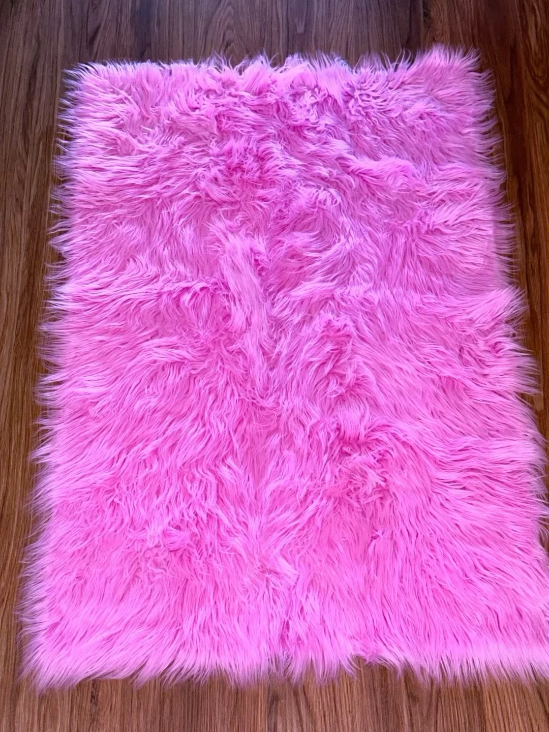 Add a touch of fun to your space with this vibrant pink faux fur rug! It's perfect for adding texture and a pop of colour to any room. Soft and cozy, it's great for bedrooms, living rooms, or even a fun accent piece in a kids' play area. 32”x47” $45 fcfs