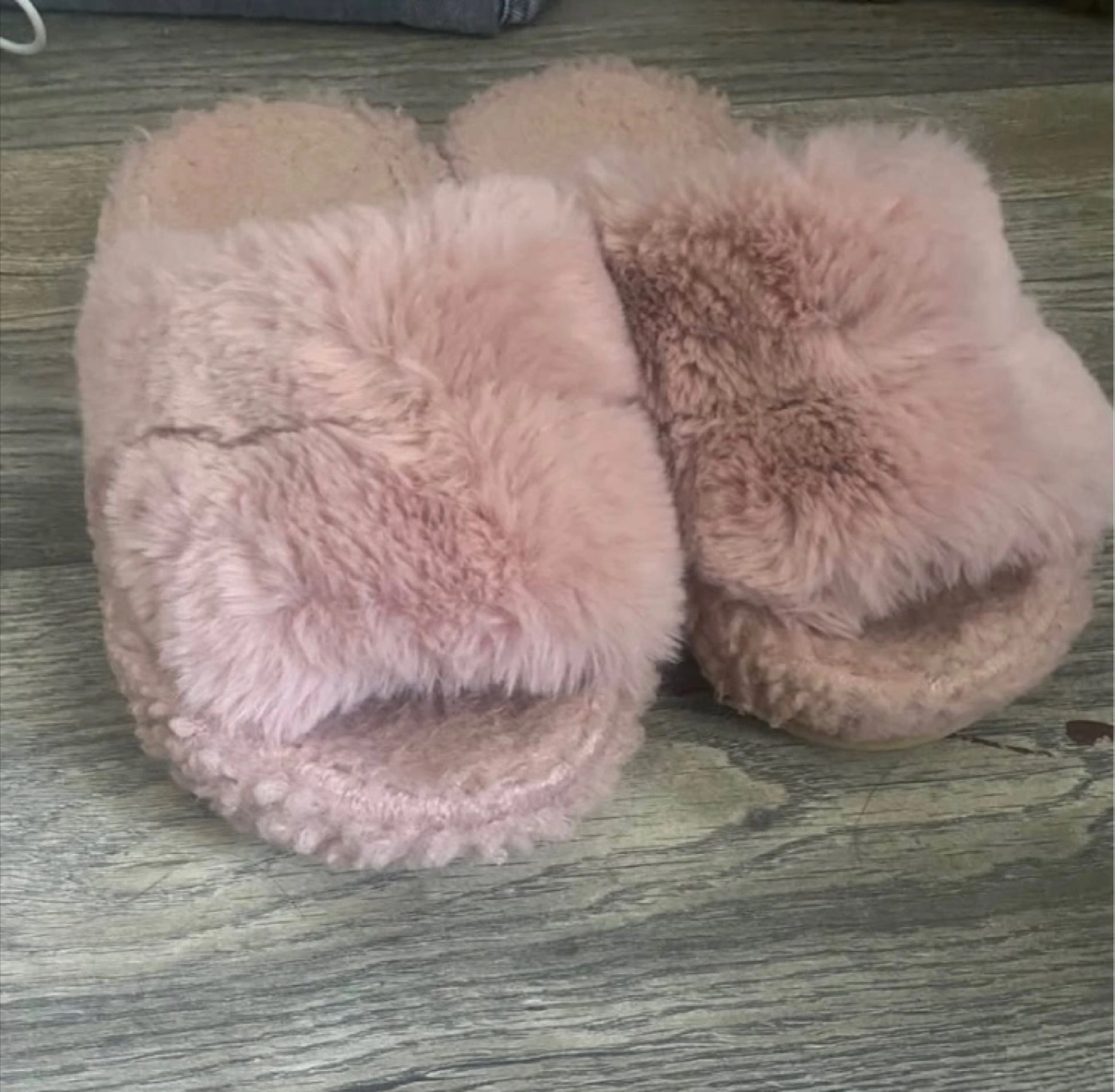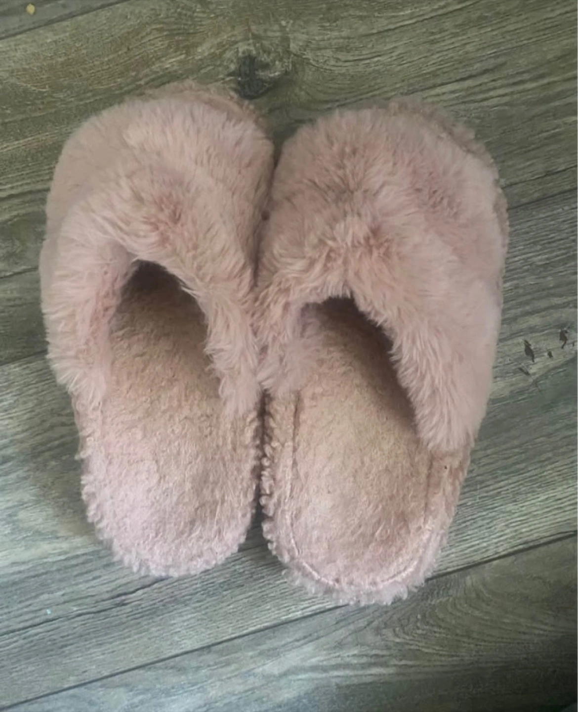 Selling a pair of super comfy pink fuzzy slippers! They're in great shape and are a size XS/S (36-37). Perfect for keeping your feet warm and cozy around the house message me for any questions !!