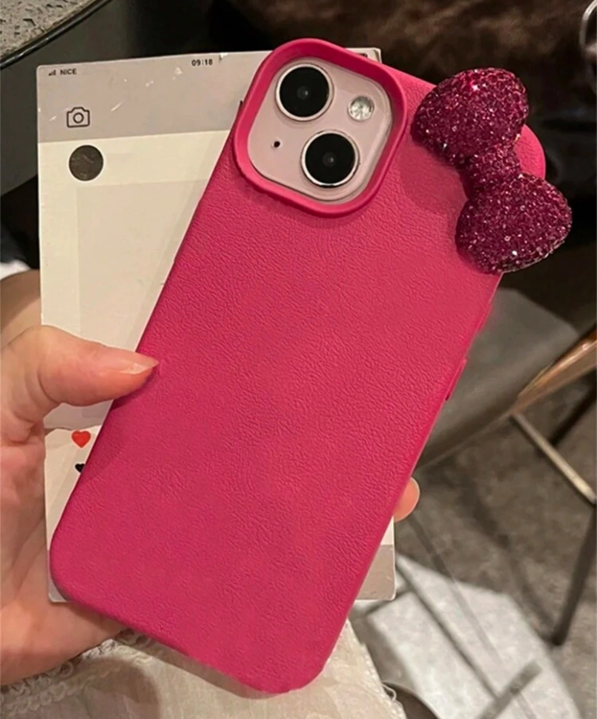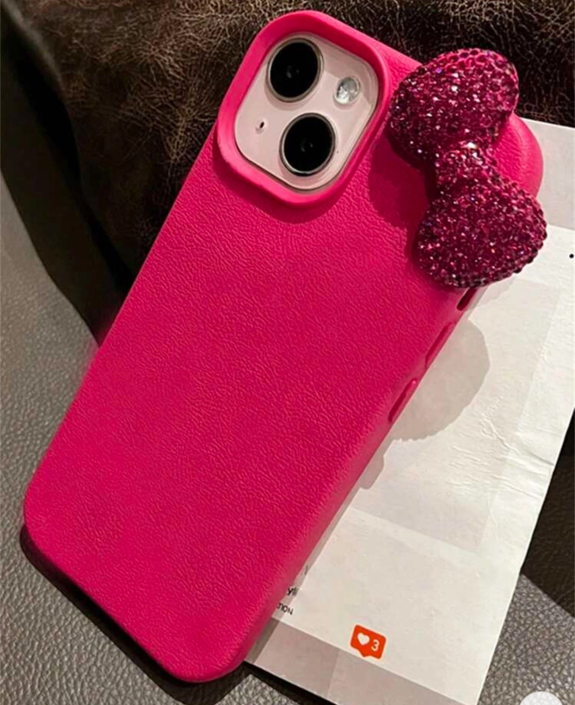 Pink phone case with a sparkly bow. Fits an iPhone. Brand new- Iphone 14 pro