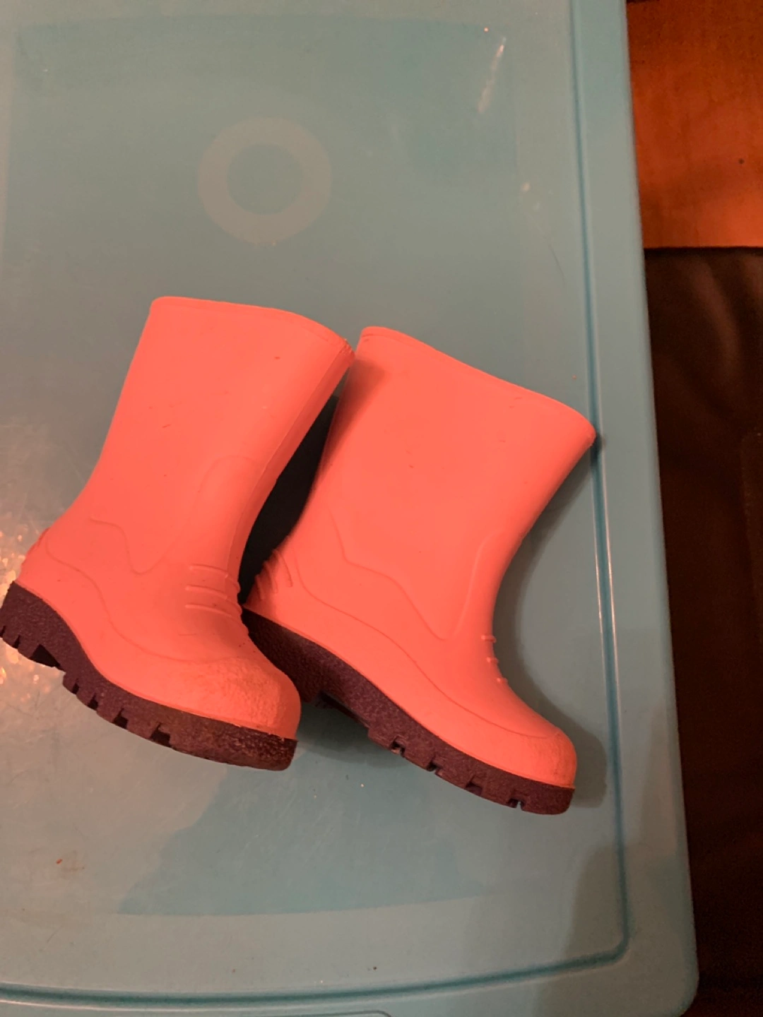 Here are some cute pink rain boots in a size 7. They're perfect for splashing in puddles on those rainy days!