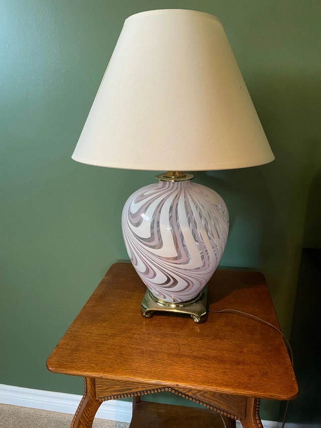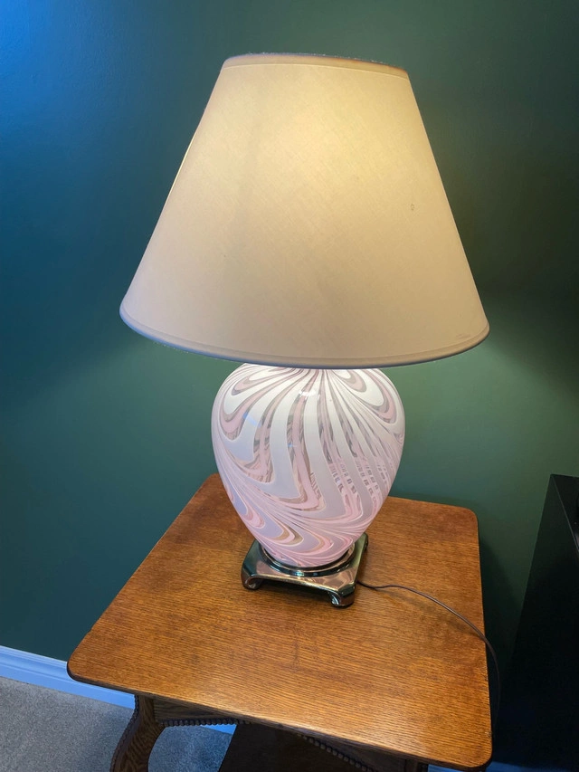 Pink swirl vintage lamp in working condition from smoke free home. The lampshade will probably need to be replaced since it has several small stains, but the rest of the lamp is in excellent condition. For Sale By: Owner