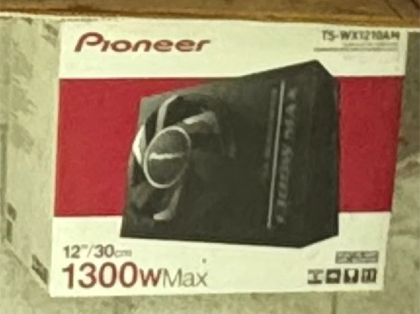 Selling a Pioneer TS-WX1210AM subwoofer. It's a 12-inch subwoofer with a maximum power of 1300W. Perfect for adding some serious bass to your car audio system!