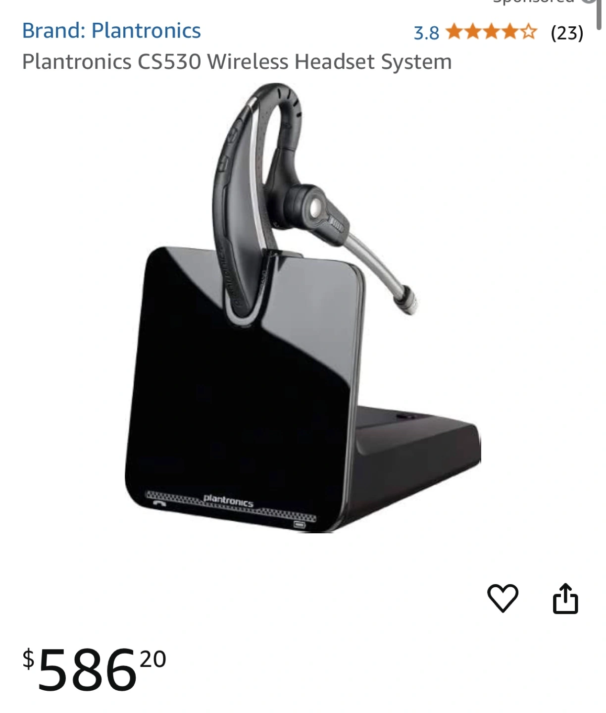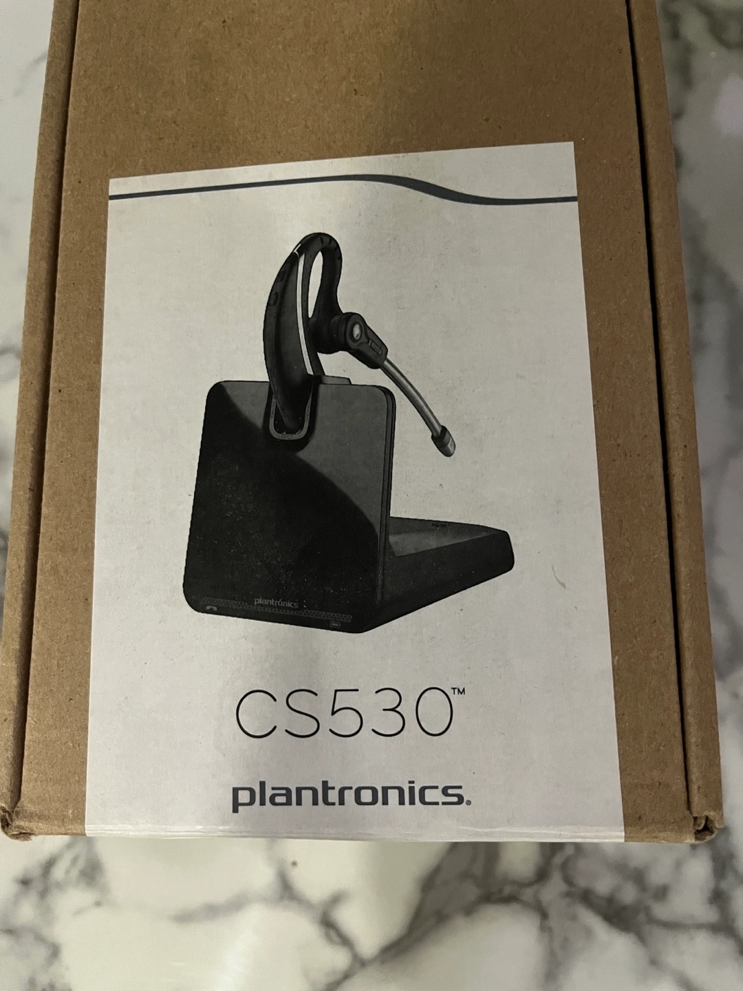- Plantronics CS530 Over-the-Ear Wireless Headset - Wireless Range Up to 350' (106.7m) | Supports 4 Different Wearing Options - Premium Wideband Audio Quality One-Touch Call Answer/End - One-Touch Volume Up/Down & Mute | Adaptive Power Management System - Conference in 3 Additional Headsets | Headset Weighs Only 0.74 oz (21 g)