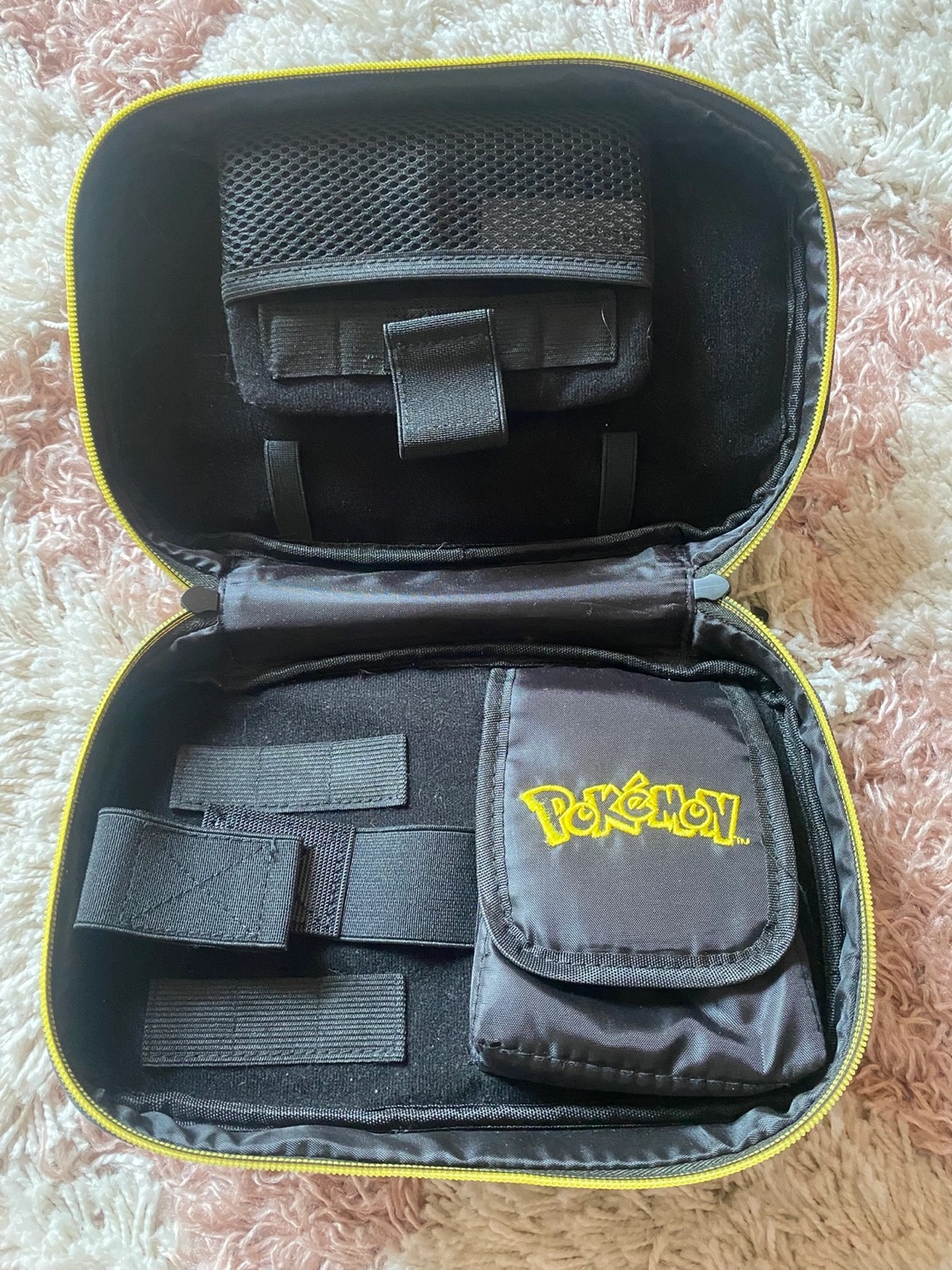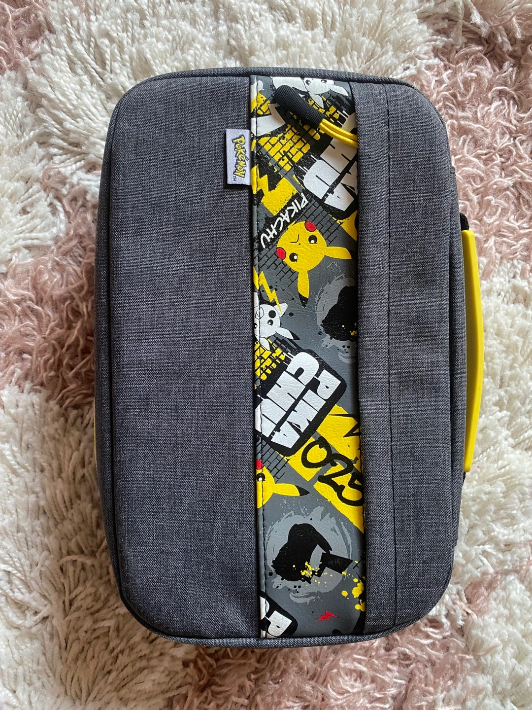 Selling a Pokémon themed carrying case for a Nintendo Switch. The case has compartments and straps to hold your Switch and accessories securely. Great for protecting your console on the go