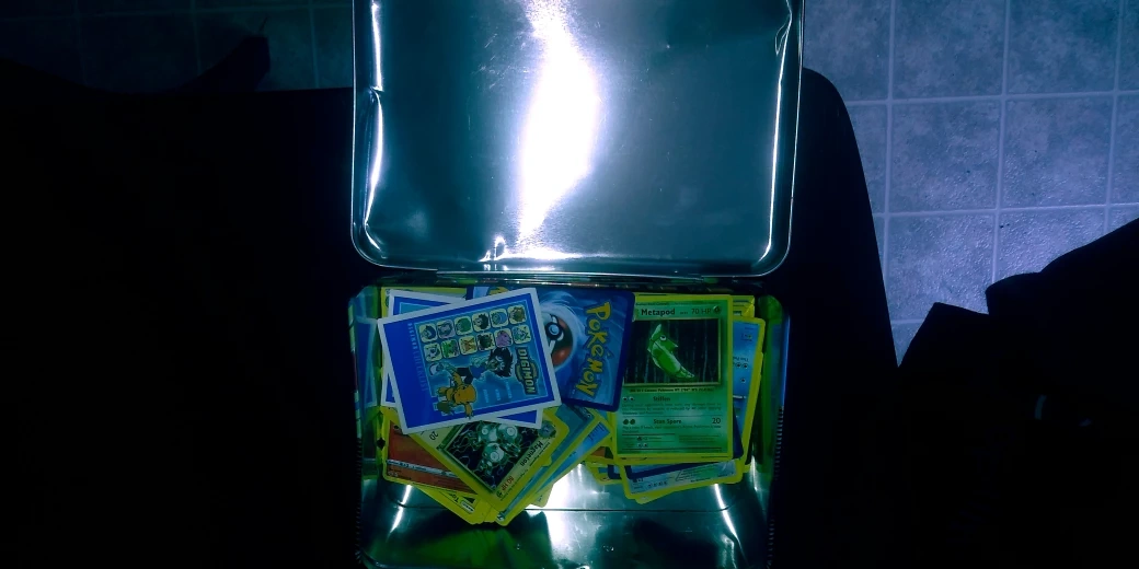 Selling a Pokémon Trading Card Game tin. It includes various Pokémon cards. Great for collectors or anyone looking to start their Pokémon card journey!