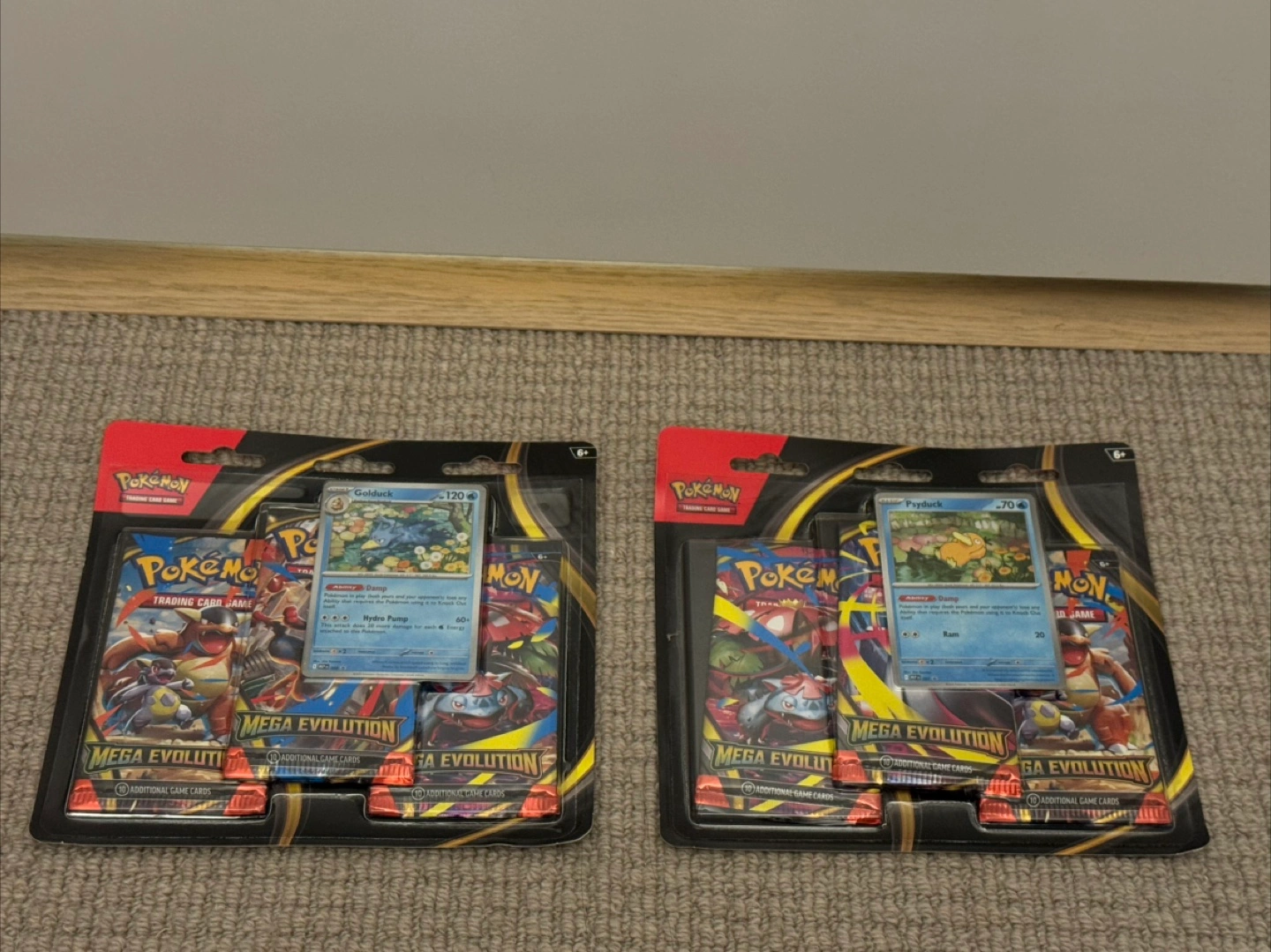 Pokemon mega evolution 3 packs blister gold duck Psyduck Goldduck-$50 Psyduck- $50 Or get both for $100 Multiple quantity available Pickup in Vancouver