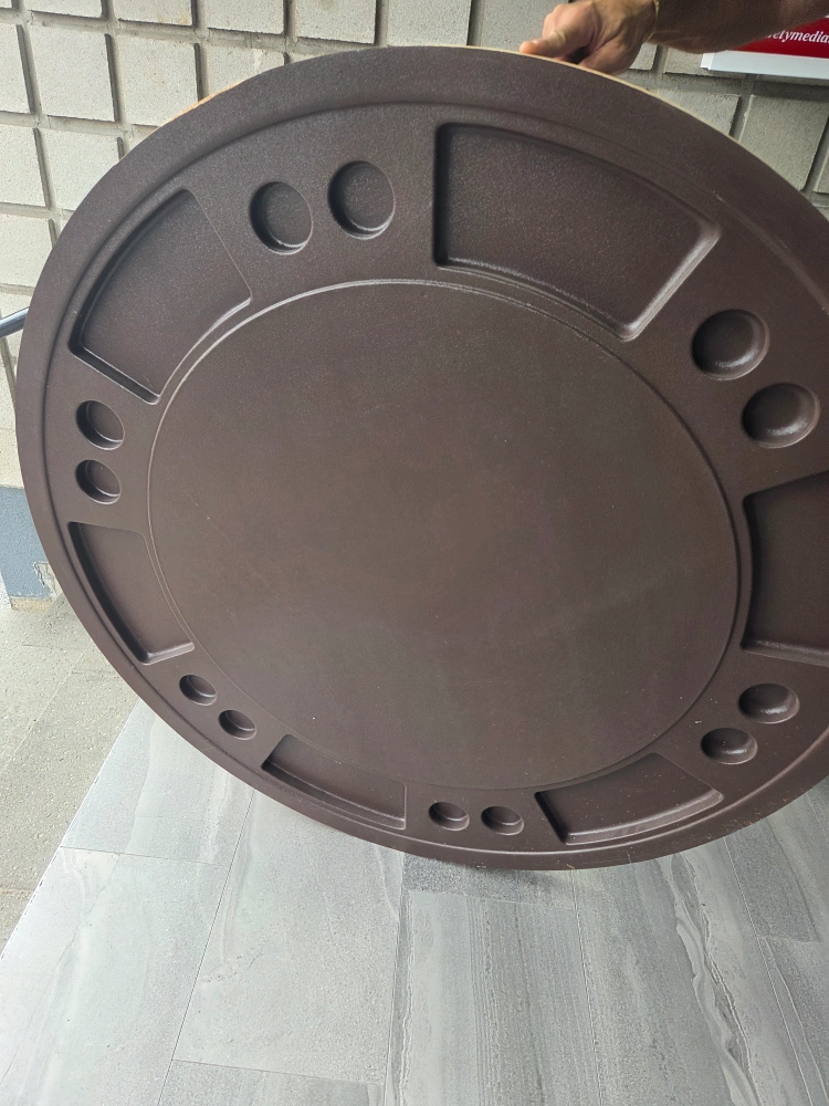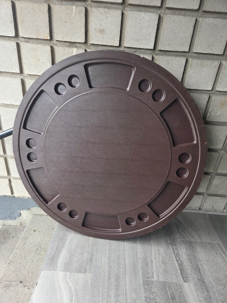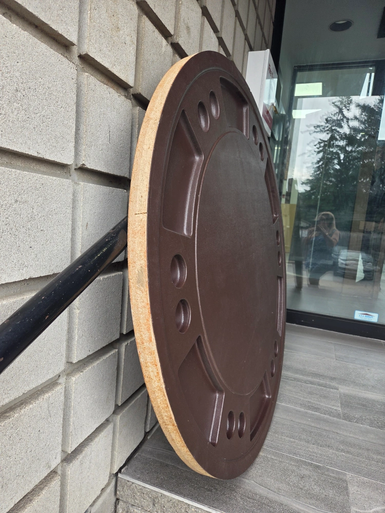 Selling a brown poker table top! It's in great shape and ready for your next game night. It has spaces for chips and drinks just the Top