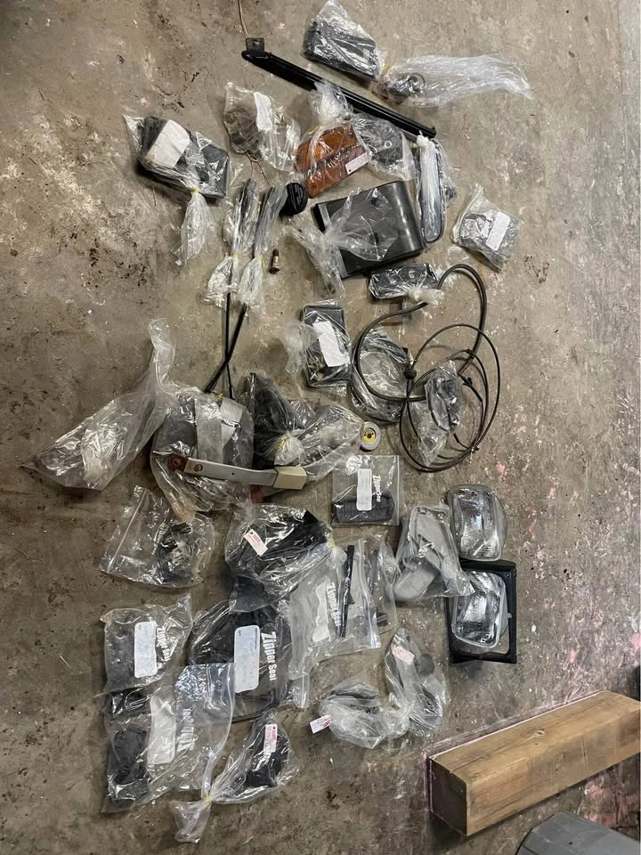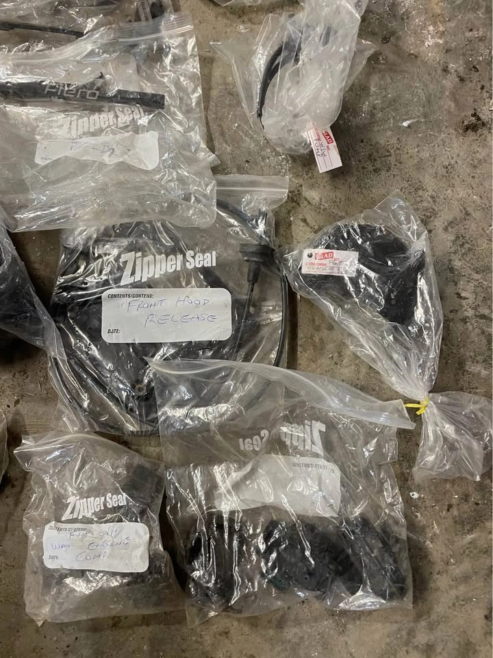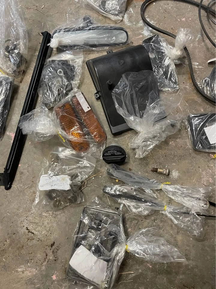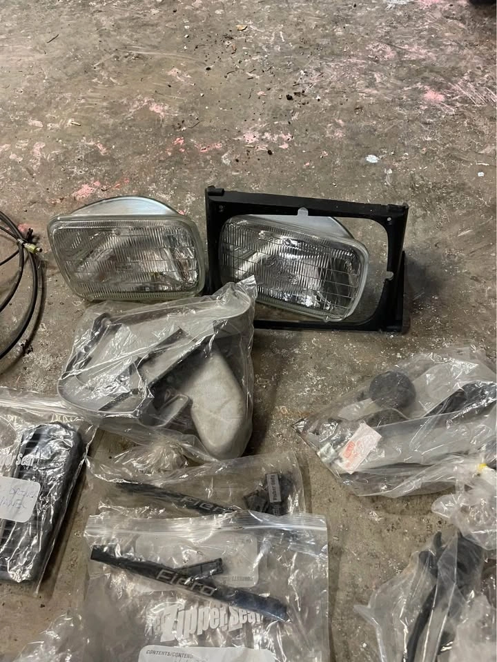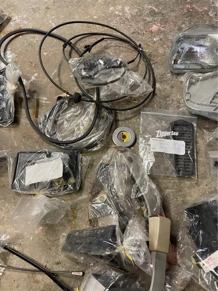 Spare parts such as seatbelts, headlights, hoses, a radiator, etc. I got this bucket when I bought my Fiero a few years ago. I sold the car but forgot about the bucket of parts. They are mostly labeled. Come have a look or just take the whole bucket!