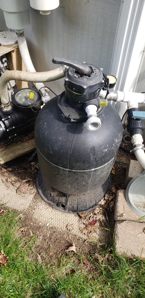 Selling a variety of pool equipment including a filter, heater (K-Star K5), pump, and Intex auto salter. All items are used but in working condition.