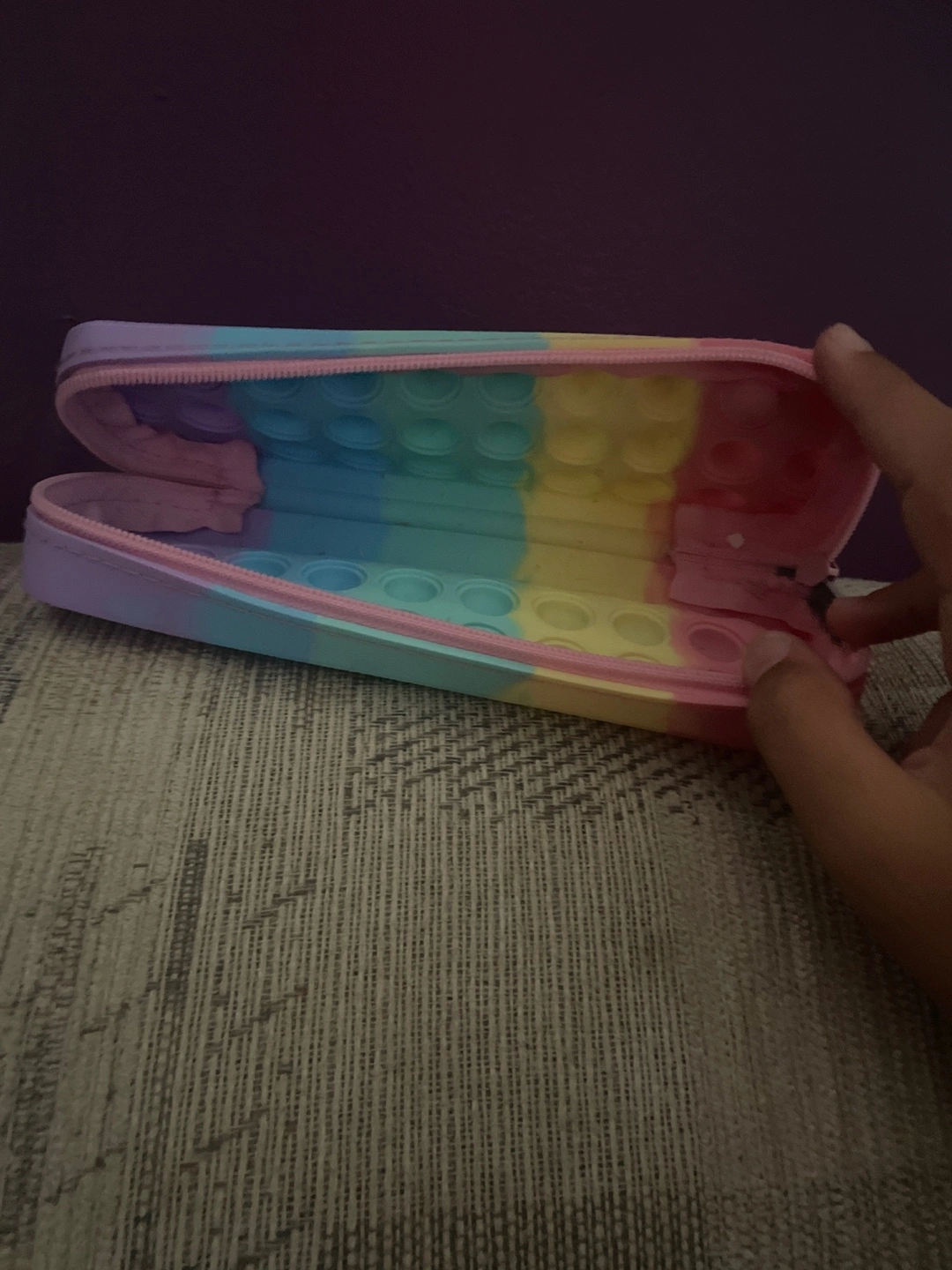 Selling a pop it pencil case and a regular blue one. It's in great condition and ready for a new home!!