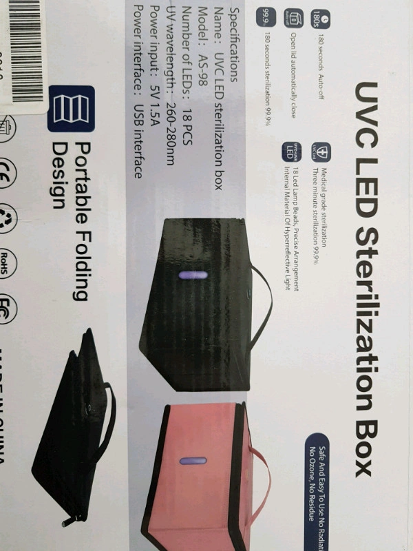 Newest Portable Outdoor Travel Disinfection Box Led UV Sterilization Bag Auto UVC Sterilizer With USB. New in the box
