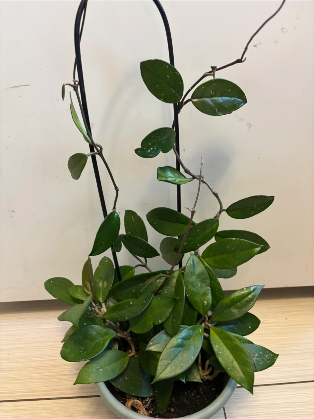 Selling a healthy and vibrant Hoya plant in a pot. It's a beautiful addition to any indoor space and easy to care for. The leaves are a lovely green with subtle markings. Perfect for plant lovers!