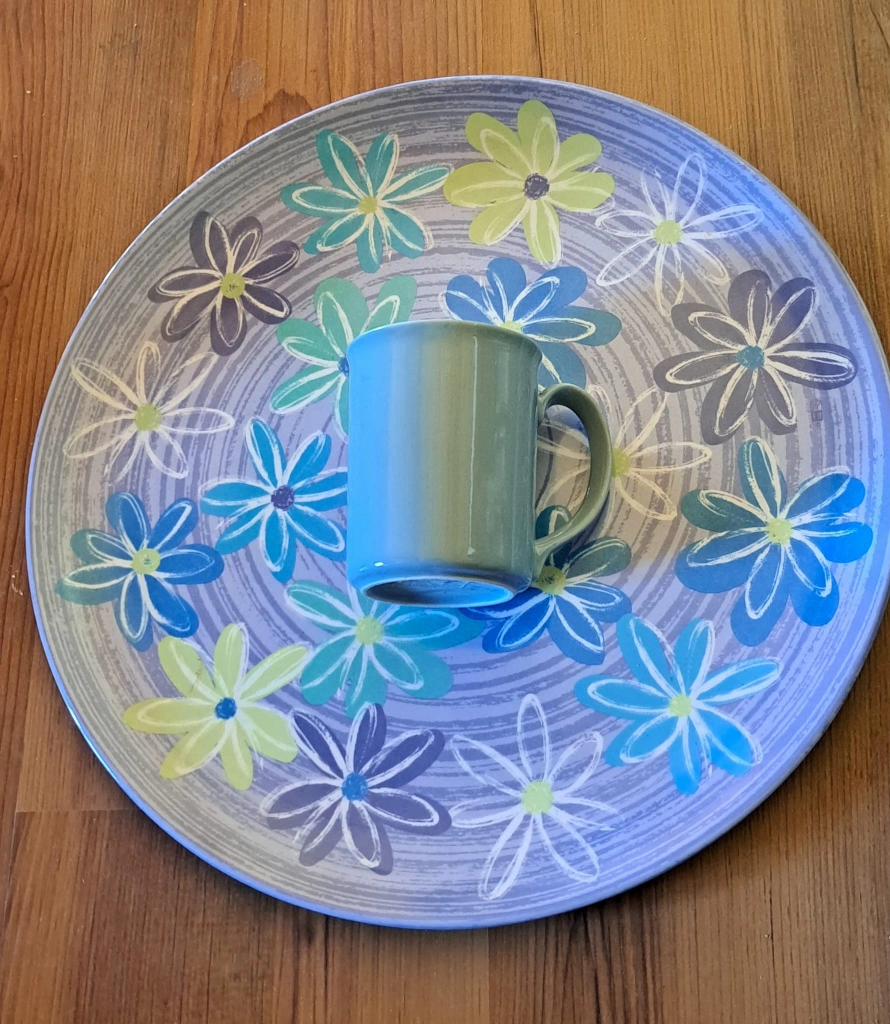 Selling a lovely decorative plate from Precidio! It features a beautiful floral design with shades of blue, green, and white. Perfect for adding a touch of spring to your home decor