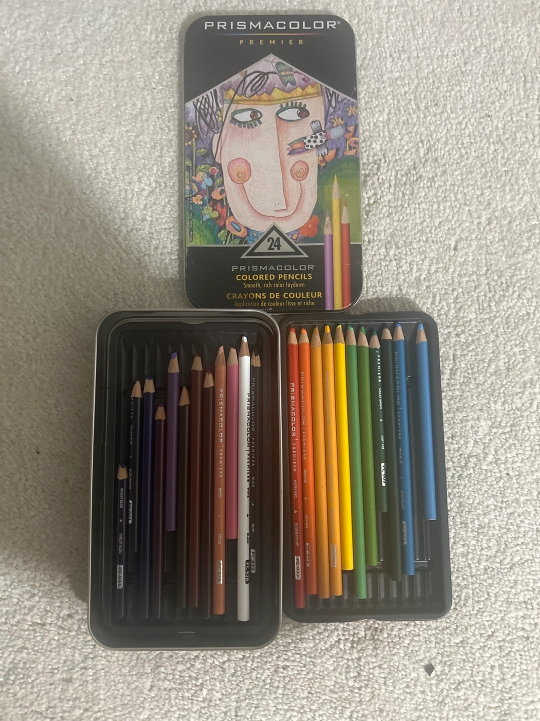 Selling a Prismacolor Premier set of 24 coloured pencils! Due to them being used they are significantly less than they would cost in stores