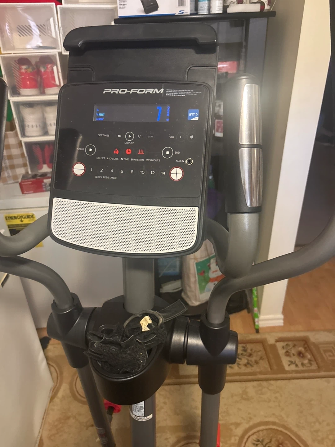 Selling a Pro-Form elliptical machine! It's in good condition and ready for a new home gym. This machine is perfect for getting a full-body workout in the comfort of your own home. It has adjustable resistance levels and various workout programs to help you reach your fitness goals. Feel free to message me with any questions!