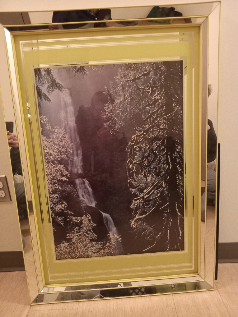 Professional picture of a forest and waterfall. 40 inches tall and 28 inches wide including Frame. 27 inches tall and 19 inches wide without frame. Pick up only. Cash only. Willing to bargain with price.