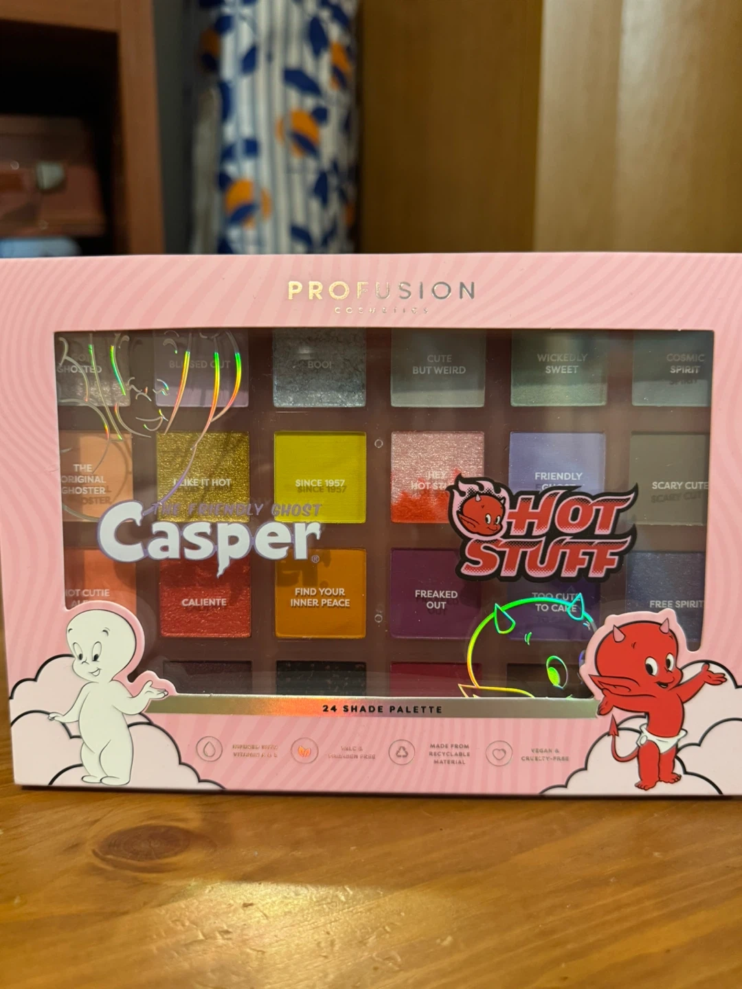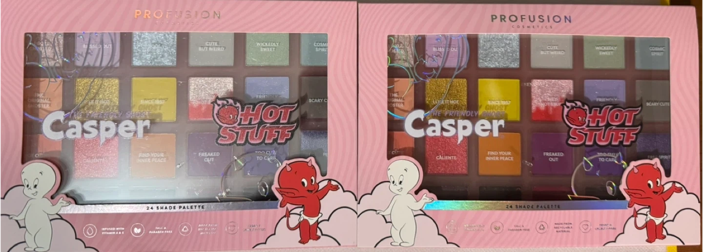 Selling a Profusion Cosmetics Casper Hot Stuff eyeshadow palette with 24 shades! It's infused with Vitamin E and is made with responsible materials. It's also vegan and cruelty-free! 2 palettes left